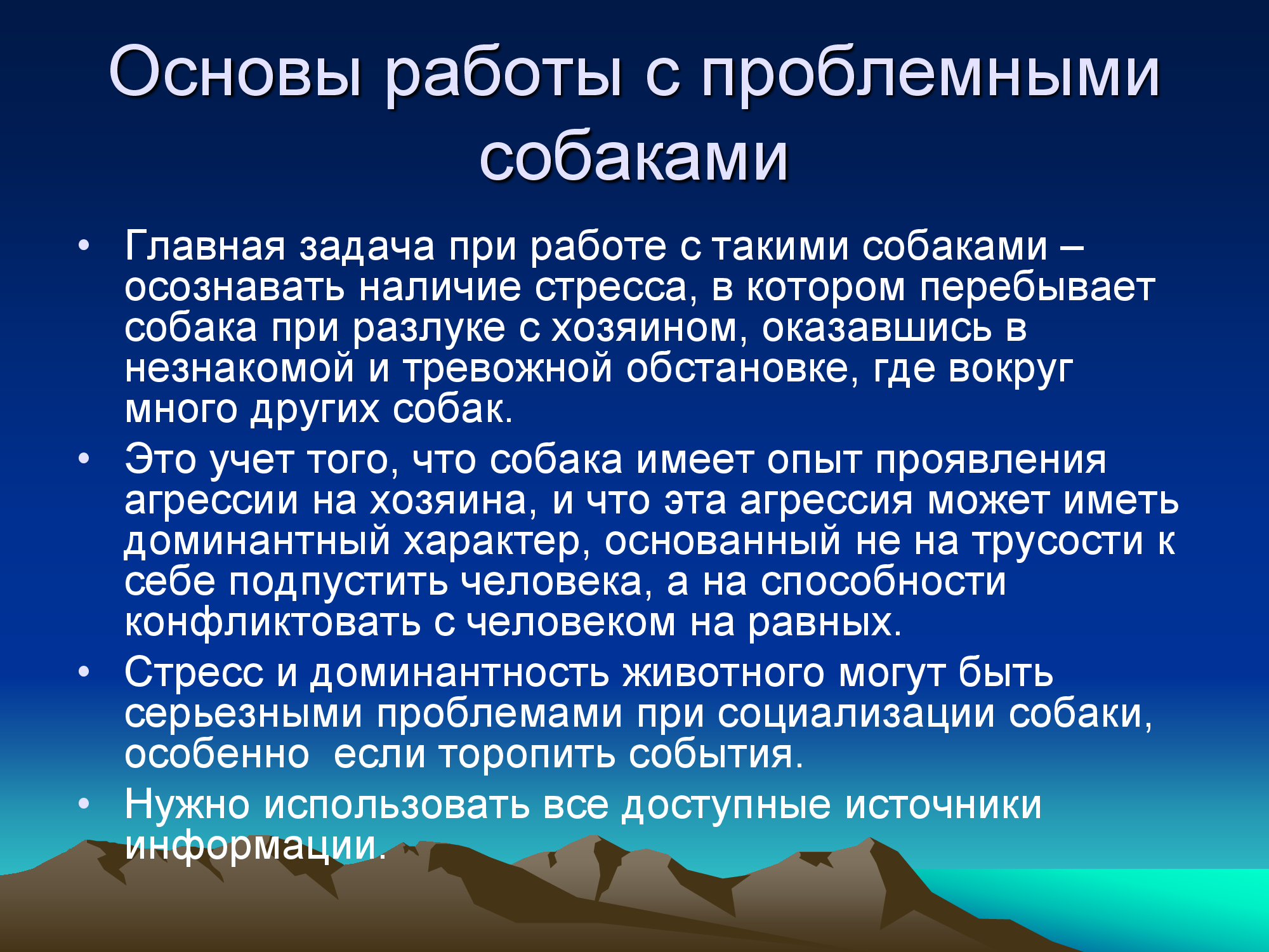 Главная задача при работе с такими собаками – осознавать наличие стресса, в котором перебывает собака при разлуке с хозяином, оказавшись в незнакомой и тревожной обстановке, где вокруг много других собак.