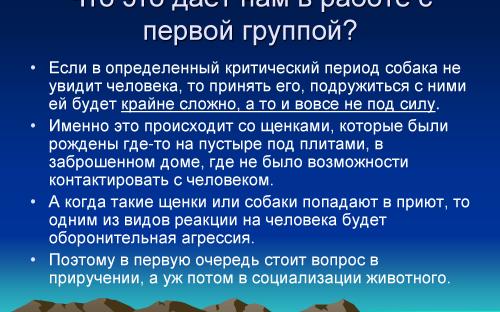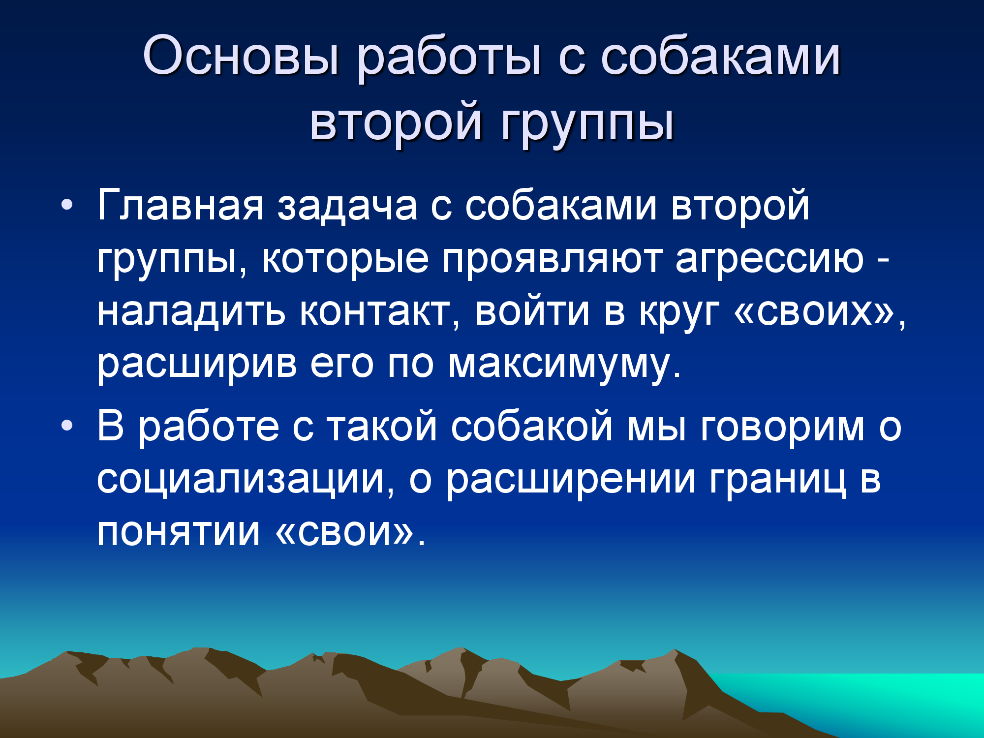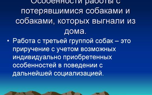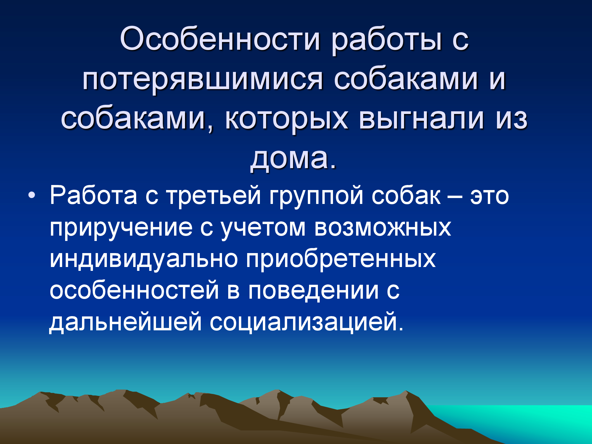 Работа с третьей группой собак похожа на работу в первой группой, но тут добавляются индивидуально приобретенные особенности в поведении.
