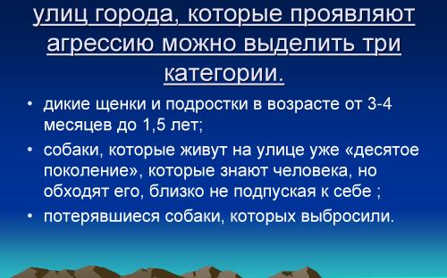 Среди собак, отловленных с улиц города, которые проявляют агрессию можно выделить три категории.