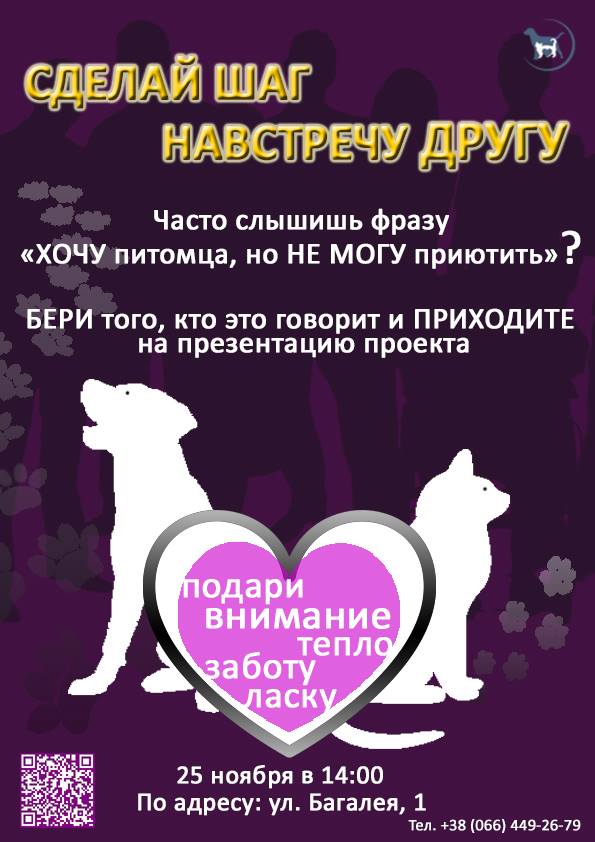 Проект подразумевает воспитание, социализацию, а при желании куратора и дрессировку выбранных животных. Но главное – общение, что наиболее важно, как для куратора, так и для лохматого подопечного. Верим, что Проект «Кураторство» благодаря Презентации Виктории расширит границы и привлечет новых заинтересованных сторонников из числа любителей животных.