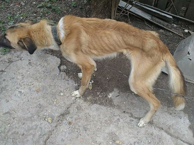 "Картина была шокирующая: пес едва держался на худых лапах, цепь тянула шею-соломинку к земле. Очень хороший, был рад, что на него обратили внимание, лизал руки и просил еду. С виду это должна была быть большая собака, но такое небрежное отношение, сделало из пса скрюченный скелет", - отметили волонтеры.