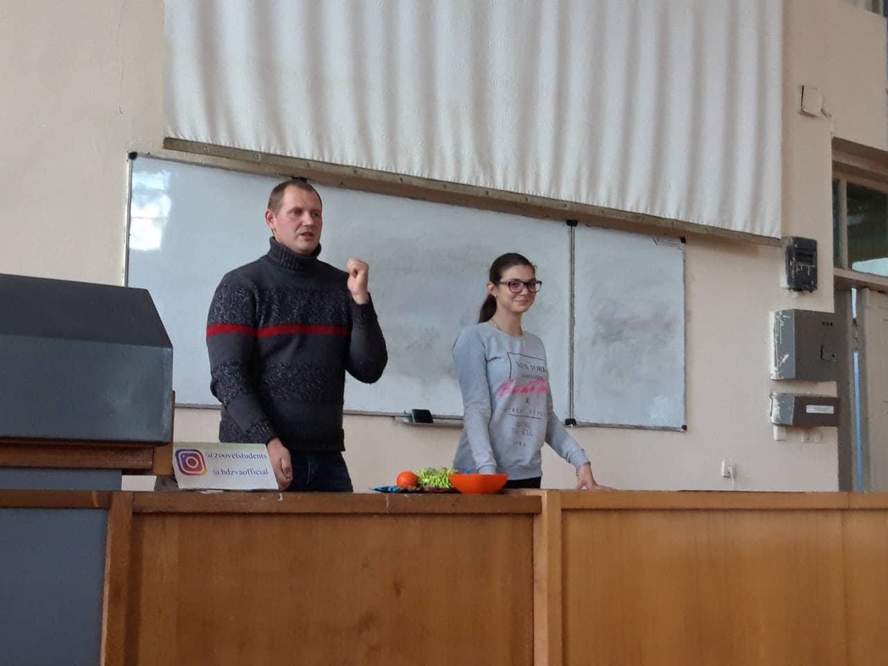 Студентам Харьковской государственной зооветеринарной академии кинологом предприятия была проведена лекция по правильному общению с собаками и перспективах профессии кинолога, а волонтером проекта Косоговой Ярославой с золотистым ретривером Чези и прямошерстным ретривером Мирой - мастер-класс по дрессировке собак.