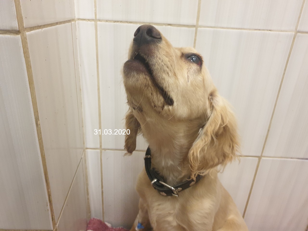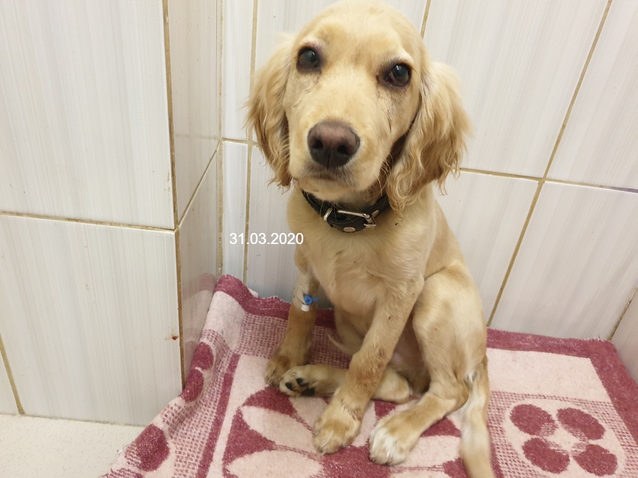 В даний час щеня знаходиться у ветеринарній клініці Комплекcу "ZooCity Kharkiv", де йому надають допомогу лікарі. Собаці приблизно 5 місяців. Маленький спанієль надійшов на лікування із закривавленою пащею і засохлими плямами крові на лапках і грудях. «Господар» вибив собаці щелепу і зуби, судячи за зовнішніми ознаками у цуценяти черепно-мозкова травма і крововилив в очі. На даний момент про прогнози говорити ще рано.