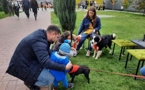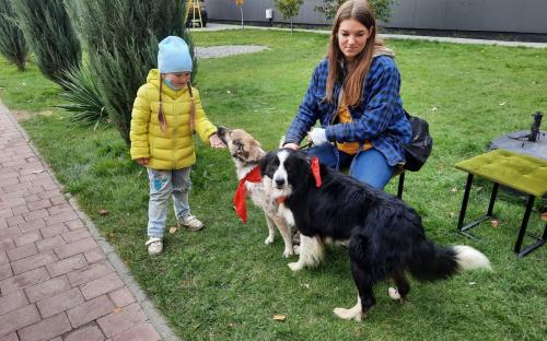 Відвідувачі фестивалю мали змогу погратися з собаками, що шукають нові родини та поспілкуватися із їх тимчасовими господарями - кураторами. До речі, левова частка гостей кінологічного фесту замислились над тим, щоб подарувати шанс безпритульній тварині на нове щасливе життя.