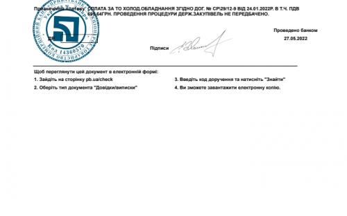 27.04.2022р. - сплачено за електроенергію 188 228 грн.