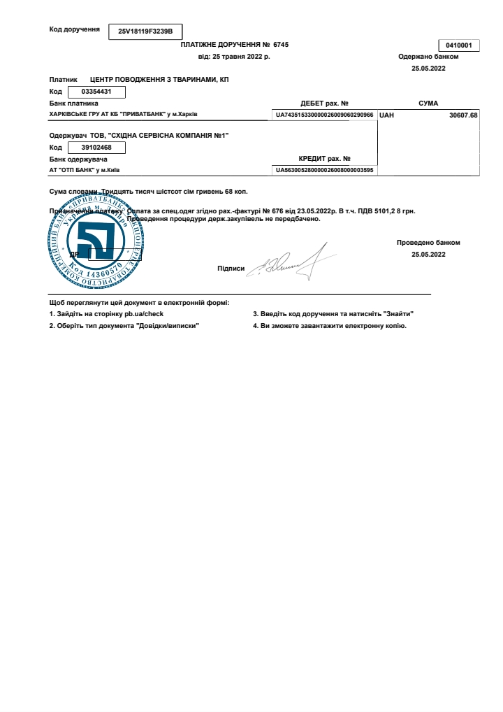 27.04.2022р. - сплачено за ветеринарні препарати та медичні матеріали 26 534 грн