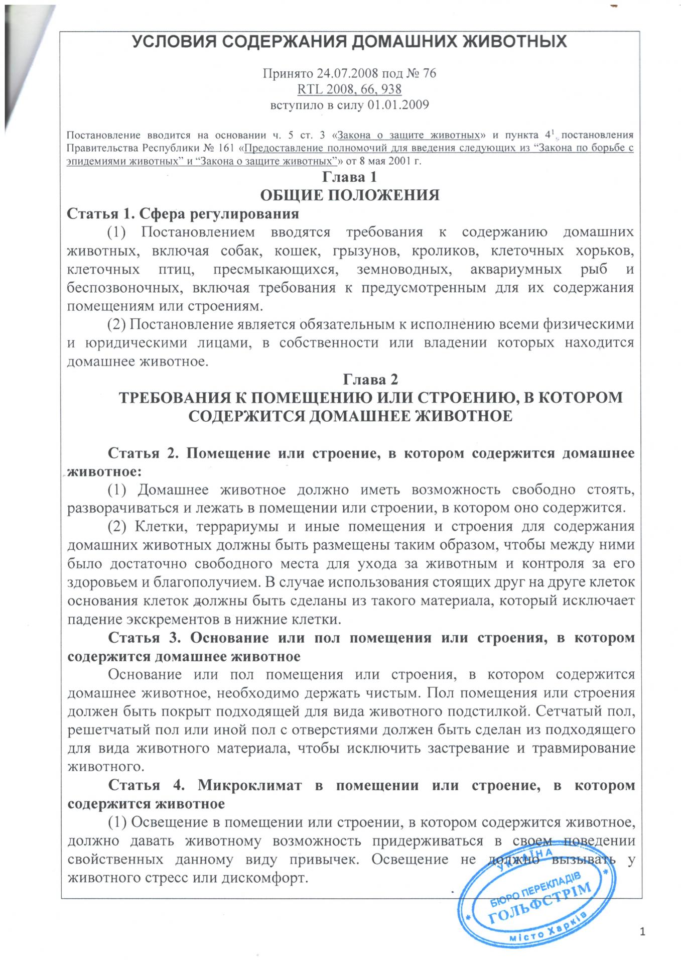 Постановление "Условия содержания домашних животных" - смотреть перевод - прикрепленные фото