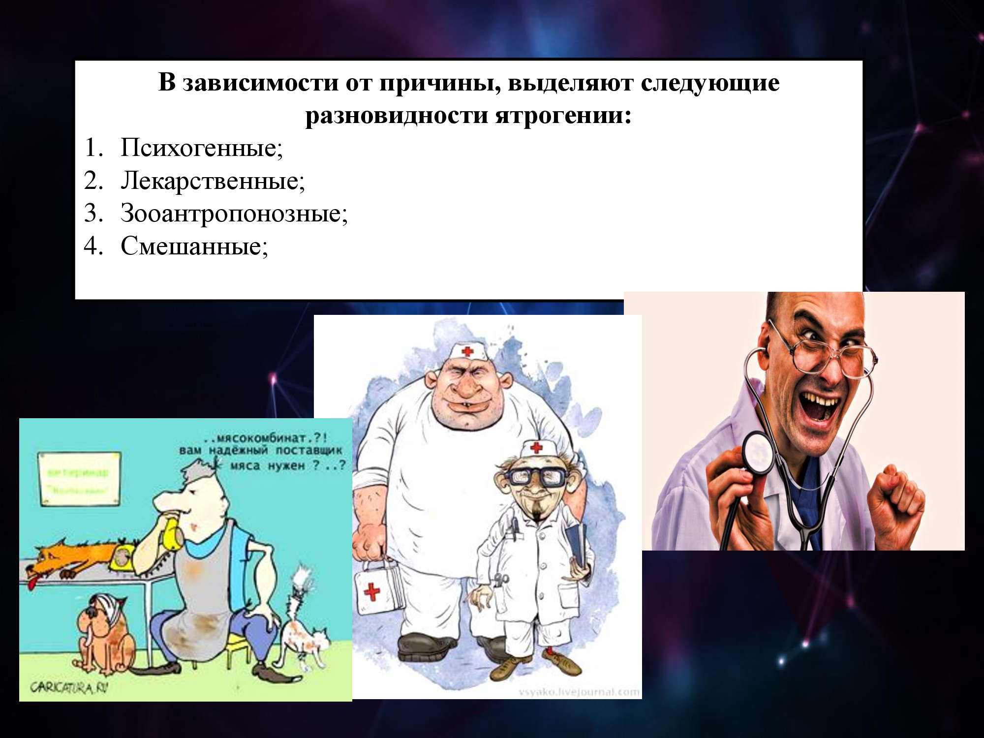 В зависимости от причины, выделяют следующие разновидности ятрогении: