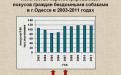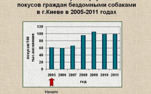 Таблица 1. Количество зарегистрированных покусов граждан бездомными собаками в г.Одессе в 2003-2011 годах, случаев на 100 тыс. населения: