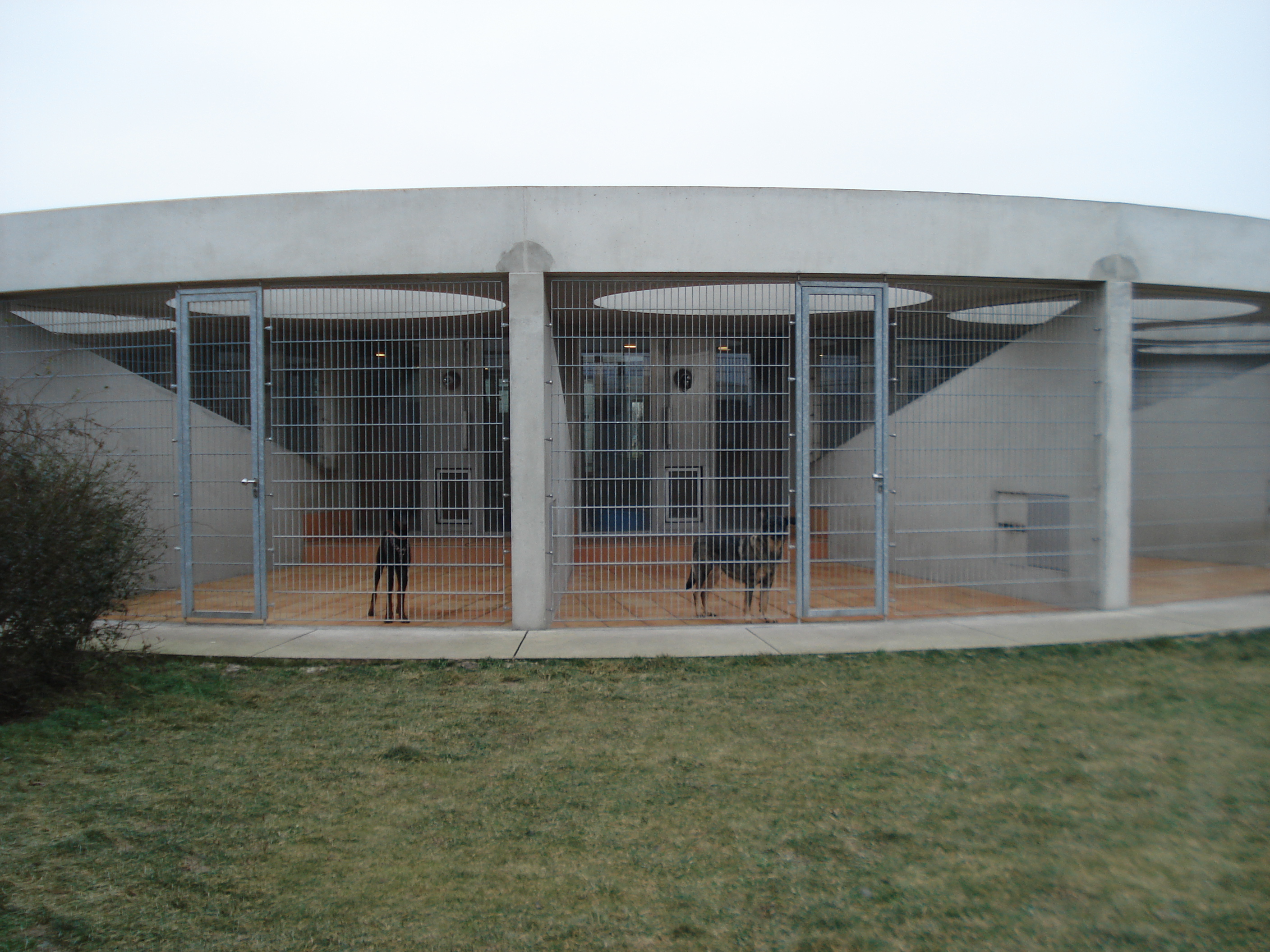 Вольер с кабиной состоит из крытой части - кабины и открытой огороженной площадки - выгула, необходимого для обеспечения минимальных потребностей животного в движении. При групповом содержании каждой собаке требуется как минимум 1 м2 кабины для отдыха и 2 м2 для выгула.