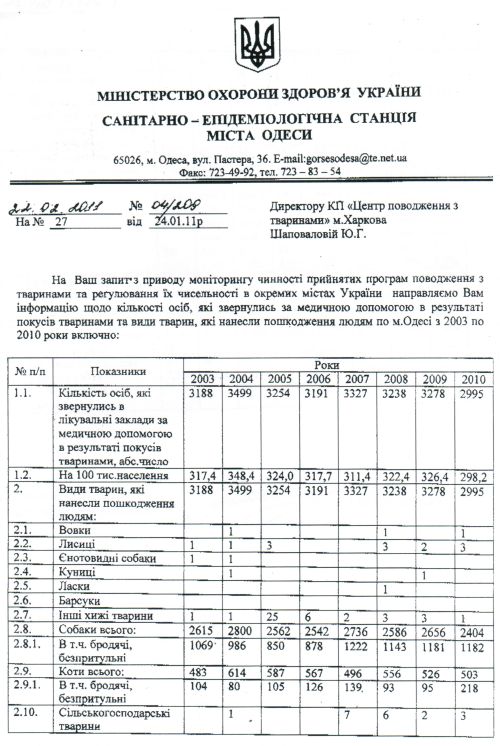При этом, при всех вложенных средствах в Одессе в 2010 бродячими собаками было покусано 1182 человек (49,17%).