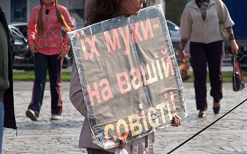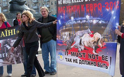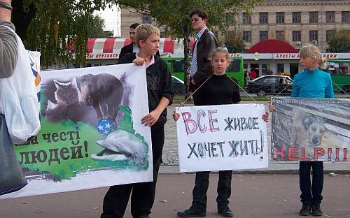 И вот, когда действо развернулось, когда конкурсы были в самом разгаре, прямо за спинами гостей праздника появились мрачные люди с плакатами, на которых были изображены мертвые собаки и лозунги: "Их муки - на вашей совести". Некоторые плакаты держали дети!