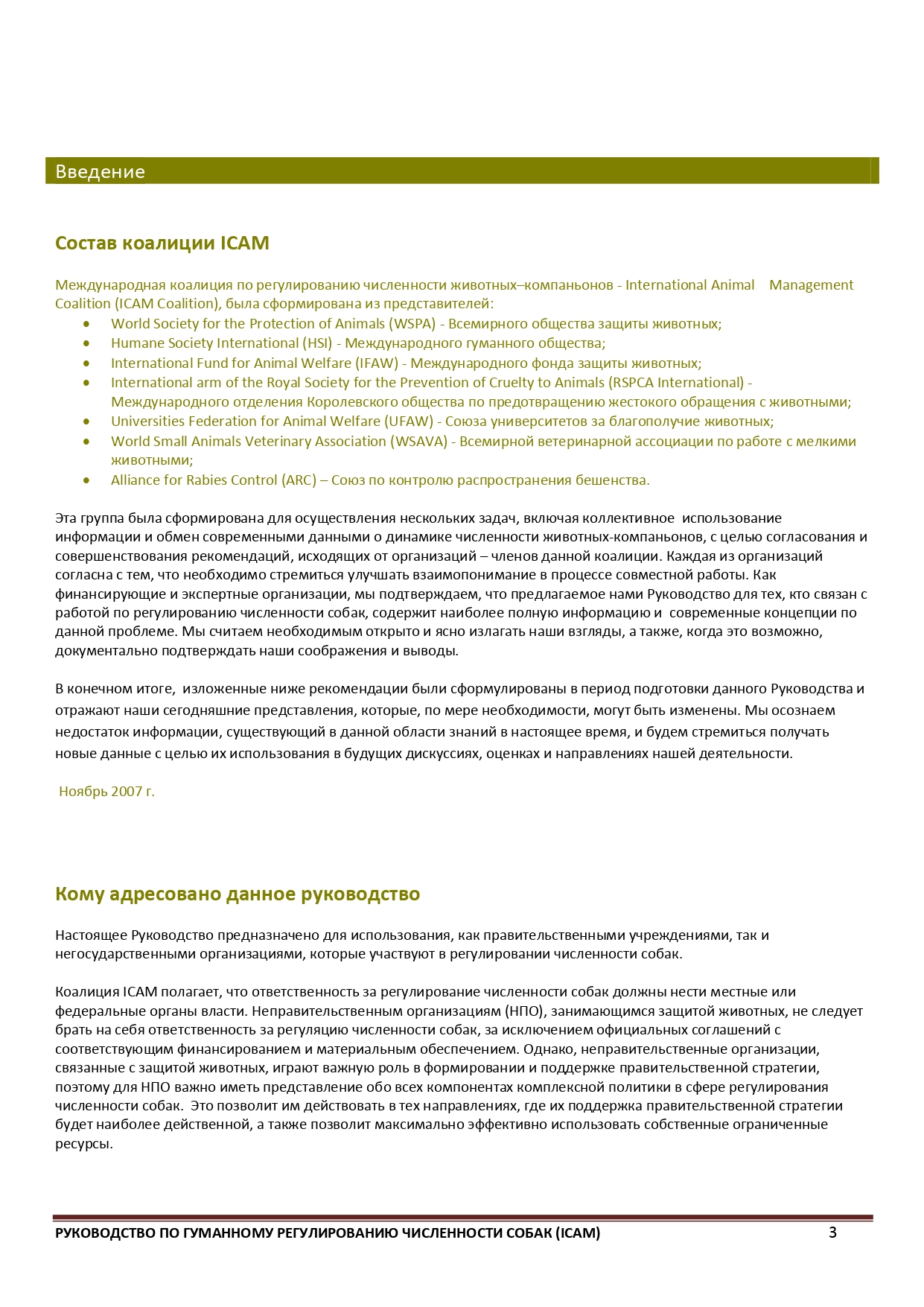 Международная коалиция по регулированию численности животных - компаньонов человека ICAM Руководство по гуманному регулированию численности собак