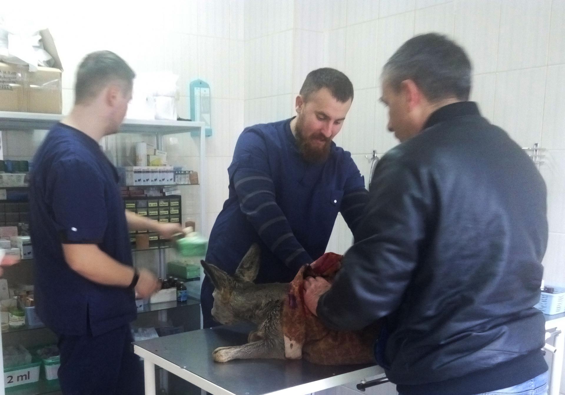 Ветеринарные врача осмотрели косулю, сделали рентген, анализ крови, провели антистрессовую терапию, обработали ссадины и порезы. Более серьезных травм не обнаружили, но оставили животное под наблюдением специалистов. Поскольку, травоядные — не наш профиль, то на предприятии отсутствовал необходимый для животного корм. Поэтому, когда мы узнали, что к нам везут косулю, сразу же поехали в ближайший поселок за сеном и соломой - для кормления и обустройства для нее временного жилища. Благодаря неравнодушным людям для косули нашелся корм, и обустроили место временного содержания.