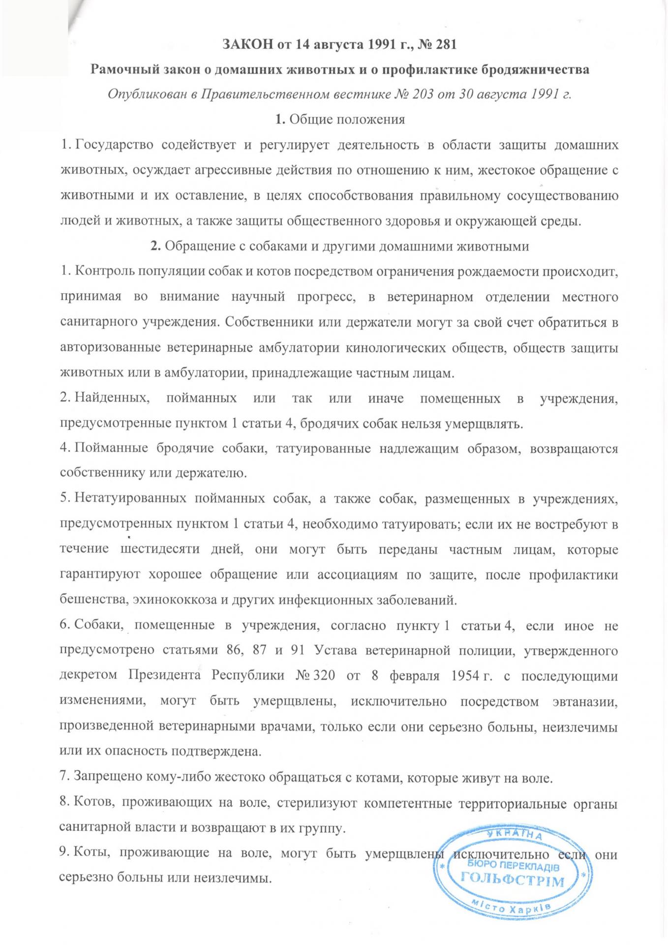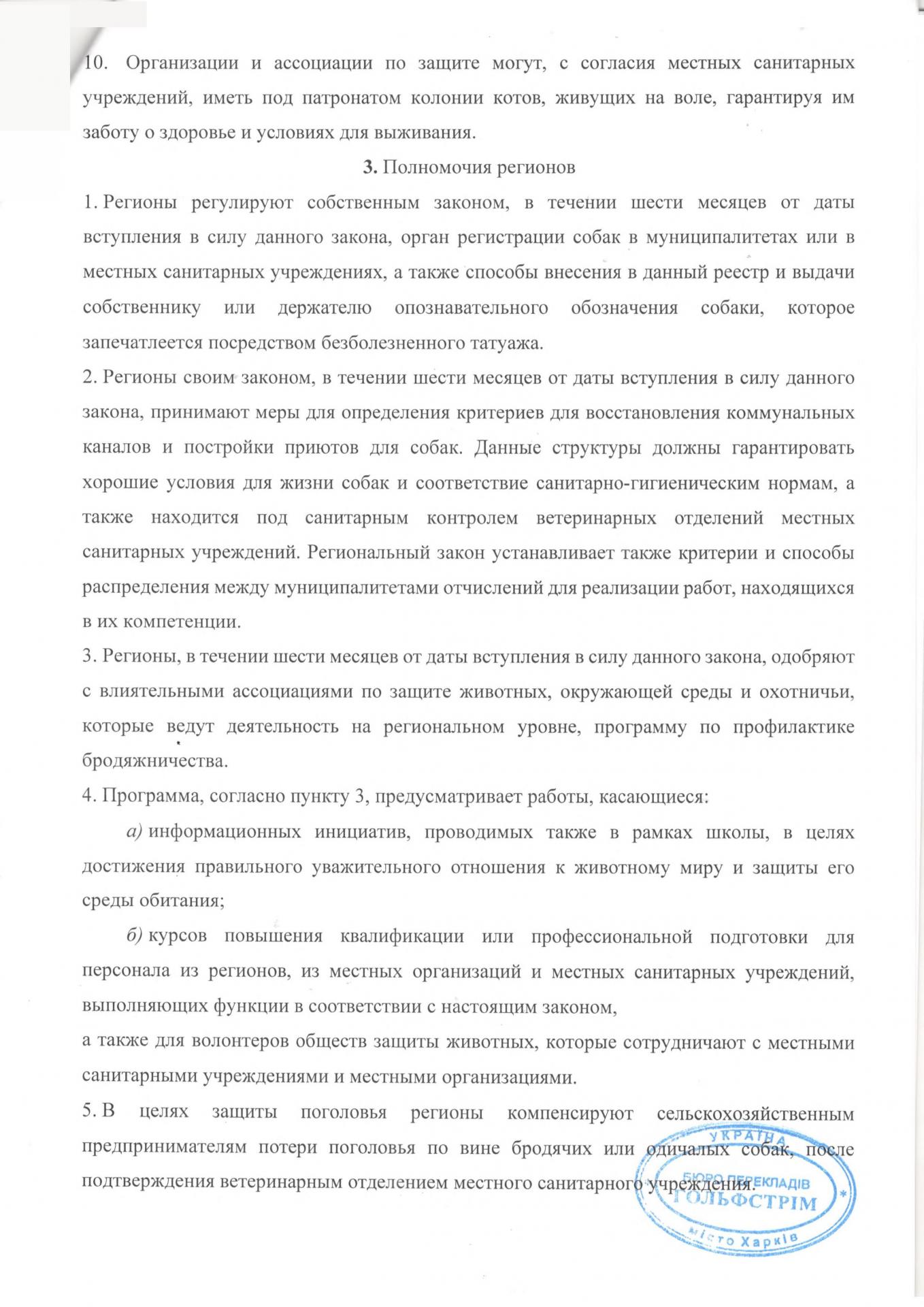 Перевод текста Рамочного Закона Республики Италия о защите домашних животных и о профилактике бродяжничества - в прикрепленных фото.