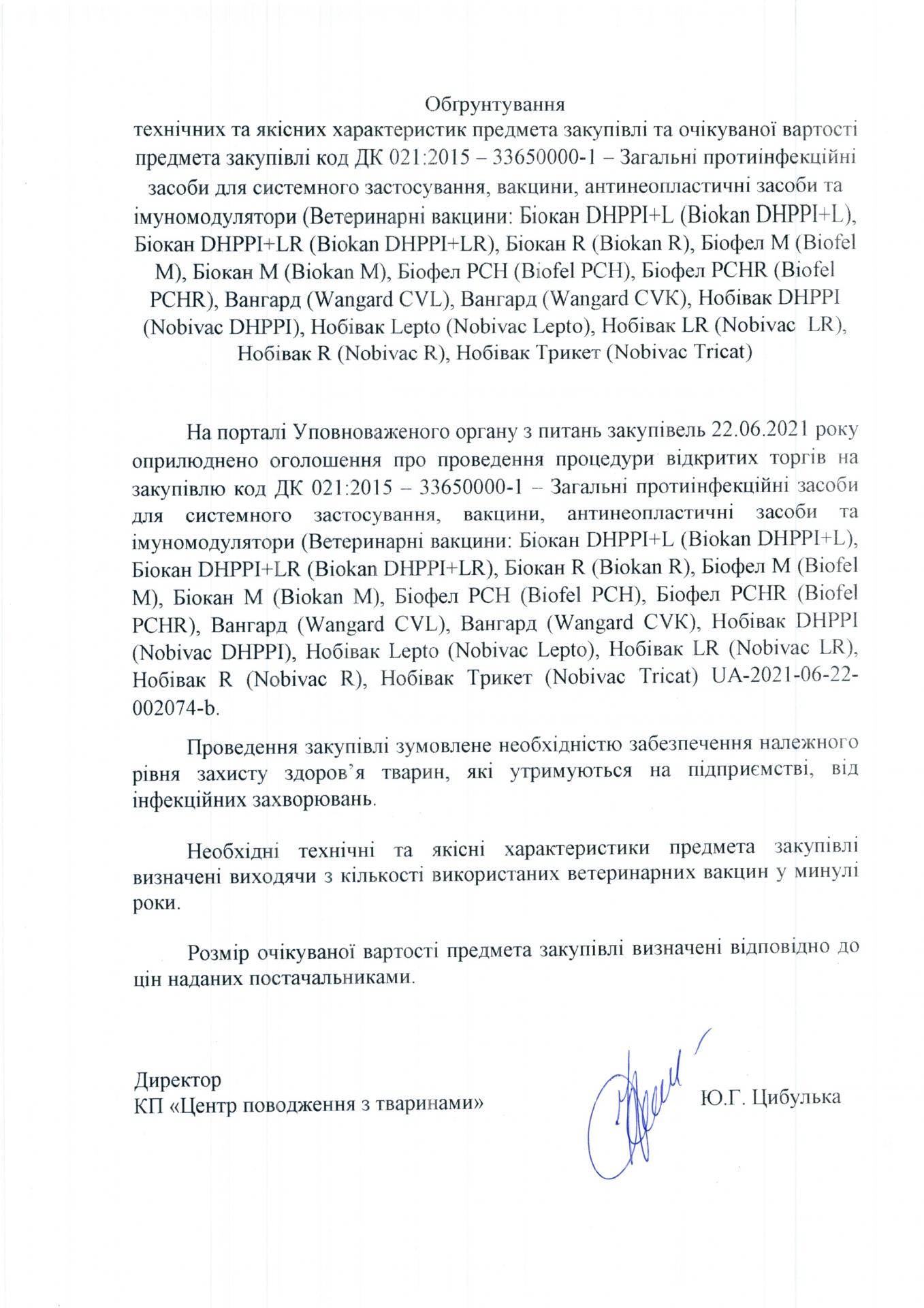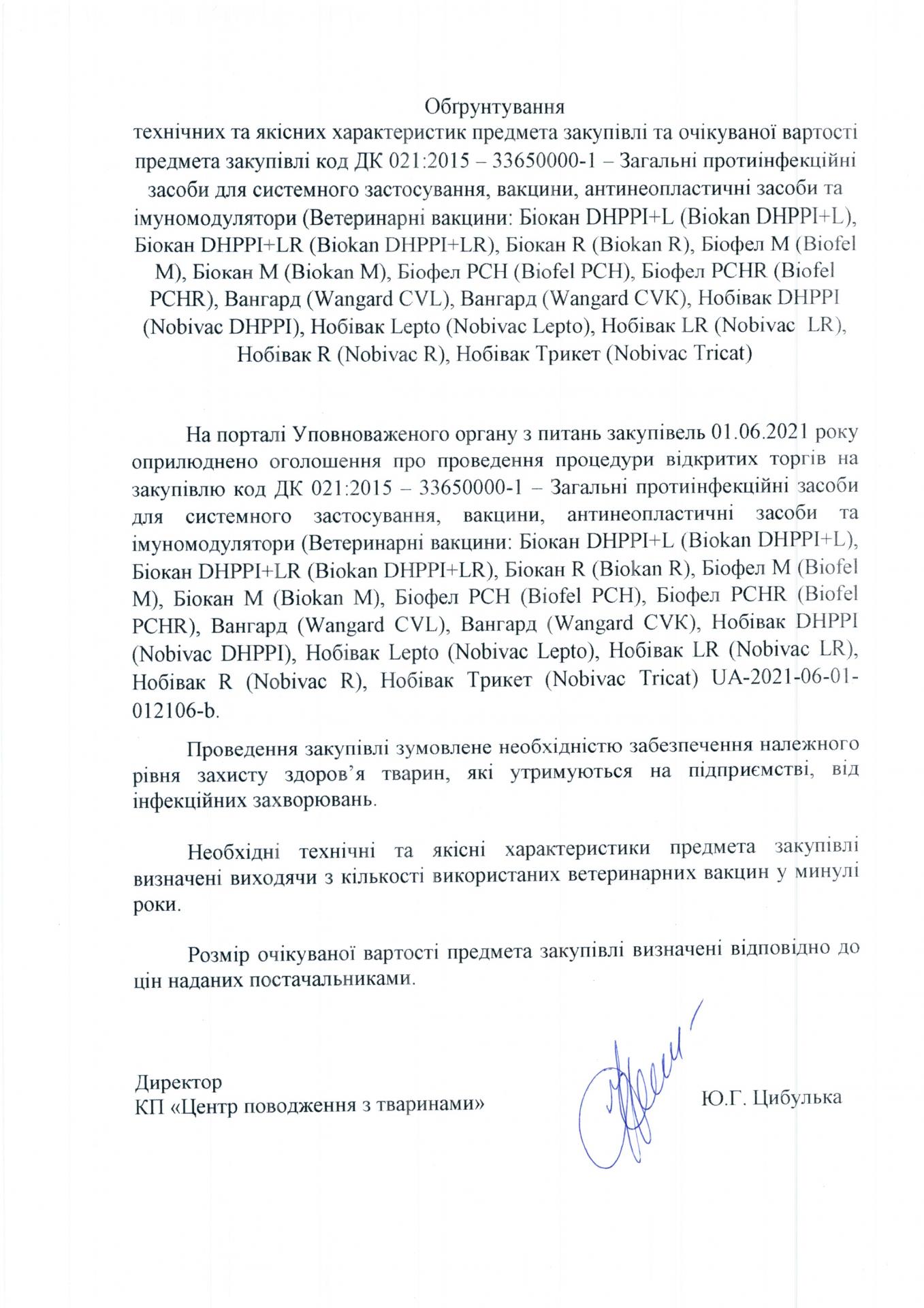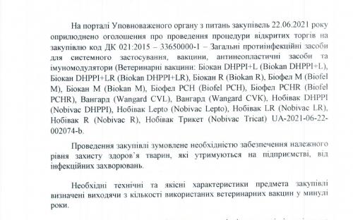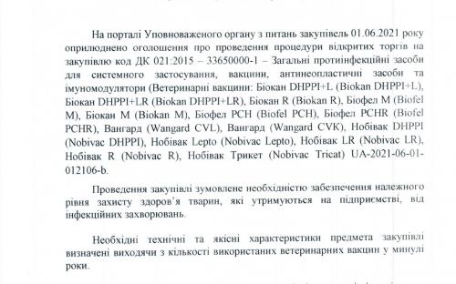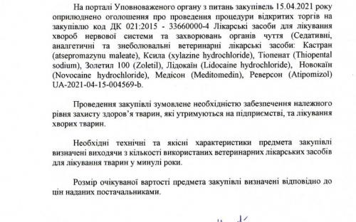 Обгрунтування закупівлі ветеринарних лікарських засобів на 2021 рік