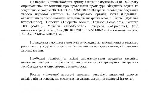 Обґрунтування закупівлі седативних засобів на 2023 р.