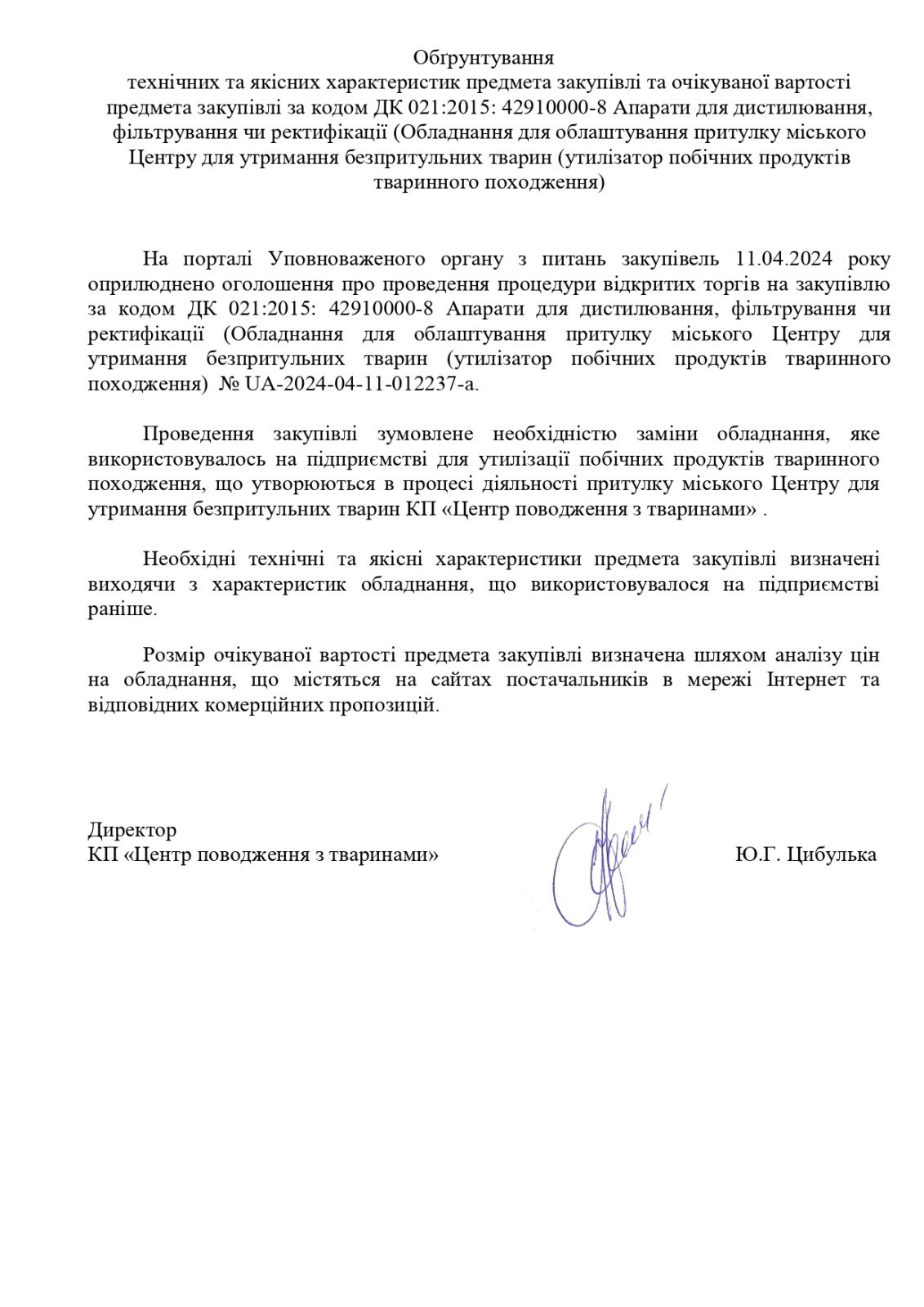Обґрунтування закупівлі утилізатора побічних продуктів тваринного походження в 2024 році