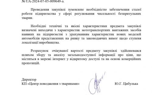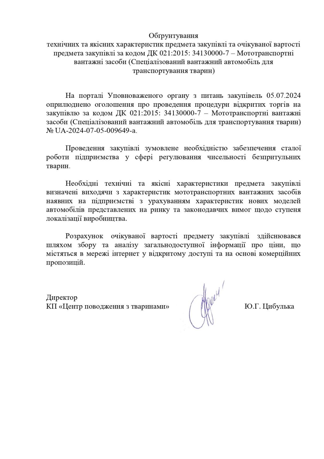 Оґрунтування закупівлі Спеціалізованого автомобіля для транспортування тварин у 2024 році.
