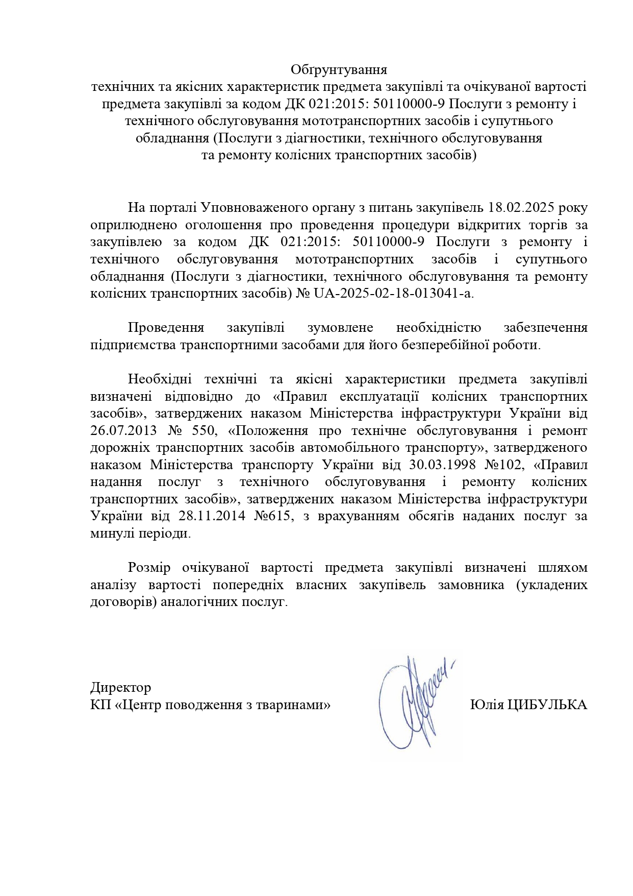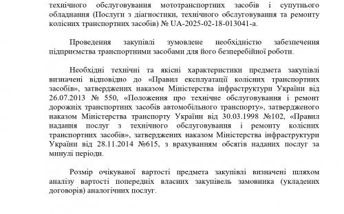 Обґрунтування закупівлі послуг з ремонту транспортних засобів на 2025 рік