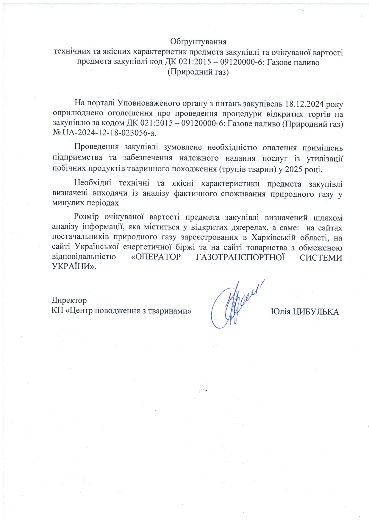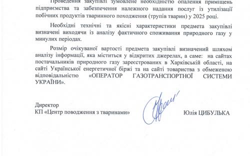 Обґрунтування закупівлі природного газу на 2025 ріr