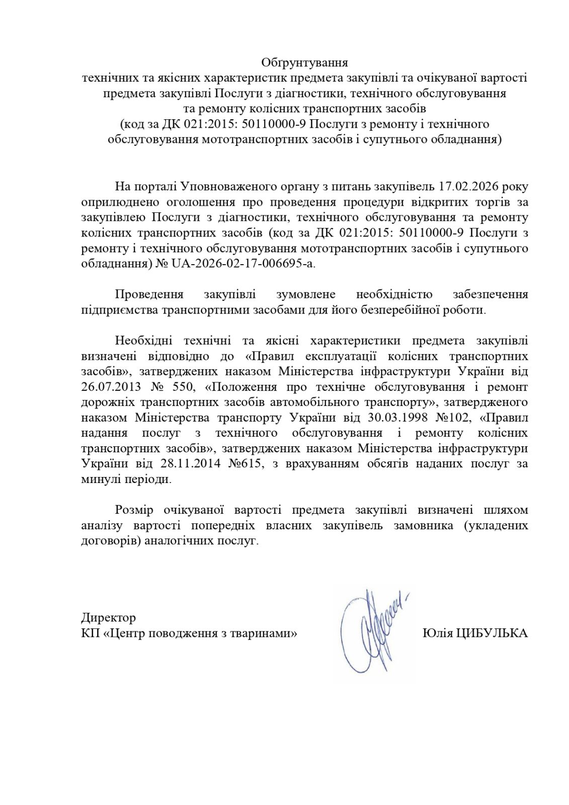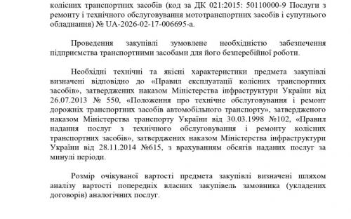 Обґрунтування закупівлі ремонту транспортних засобів на 2026 рік