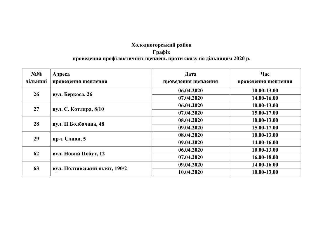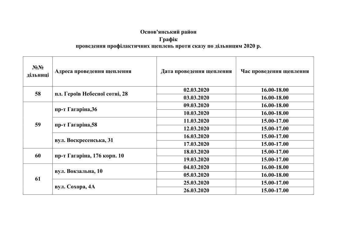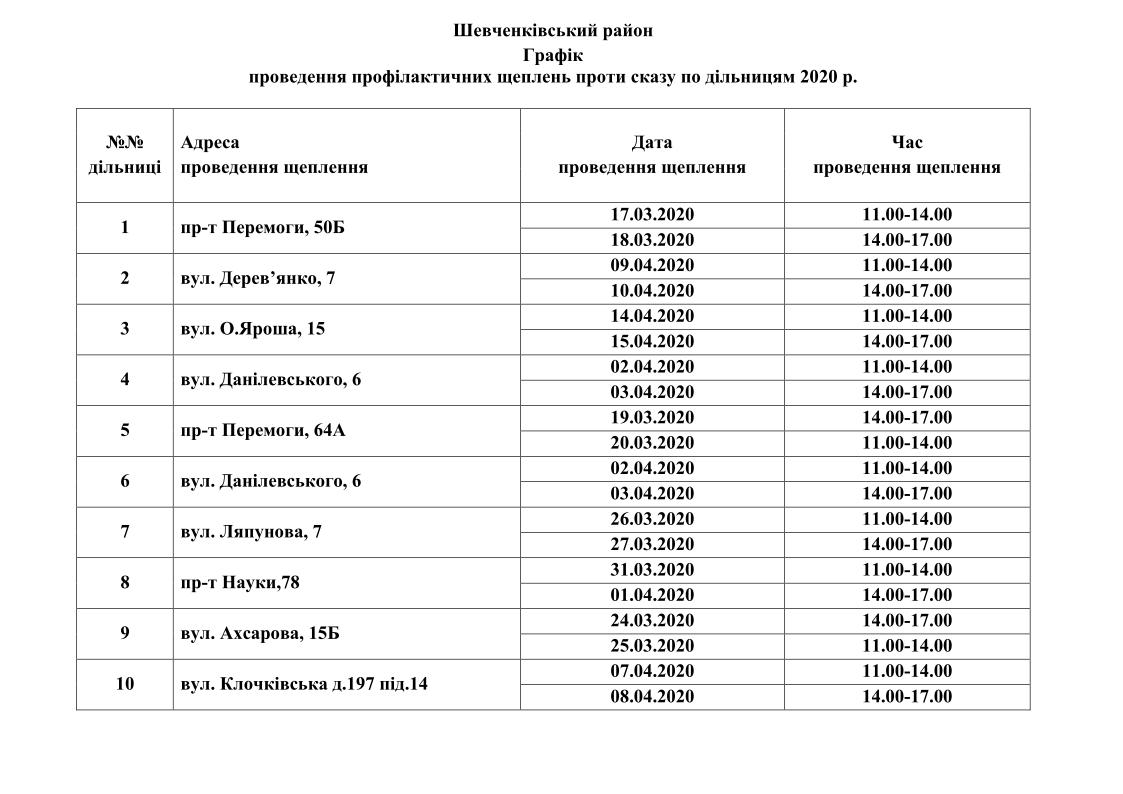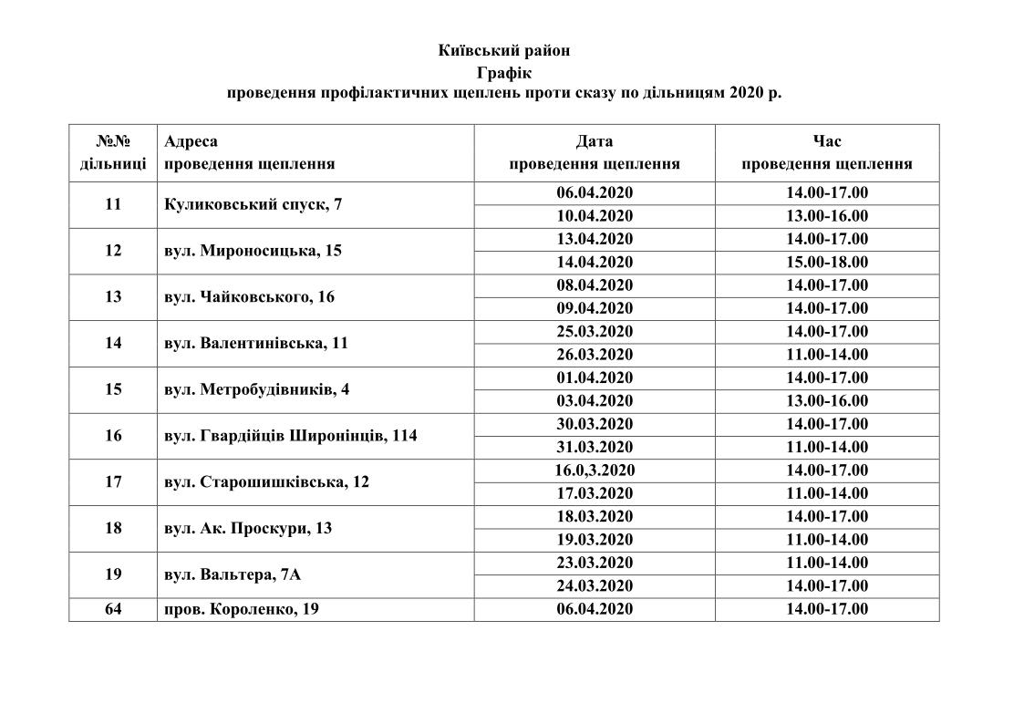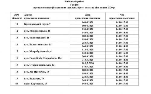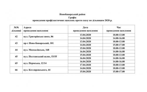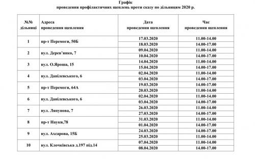 Вакцинація проводиться для домашніх тварин власників, які проживають у будинках комунальної форми власності. Графіки проведення вакцинації приведені нижче.