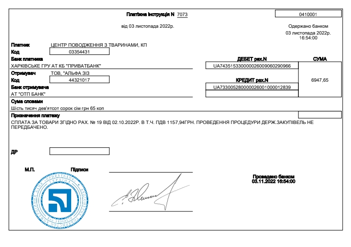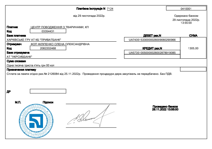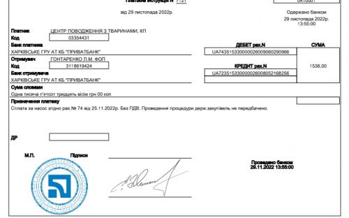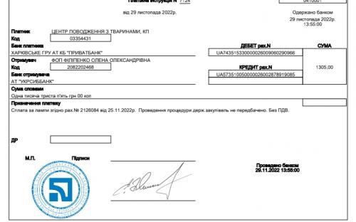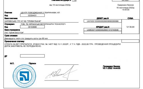 - ветеринарні засоби (післяопераційні коміри, катетери та шприци) - 27 523,22 грн.