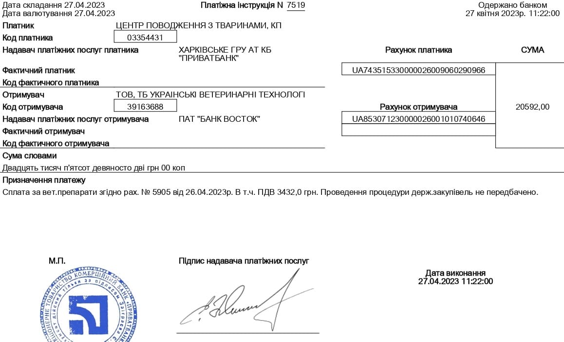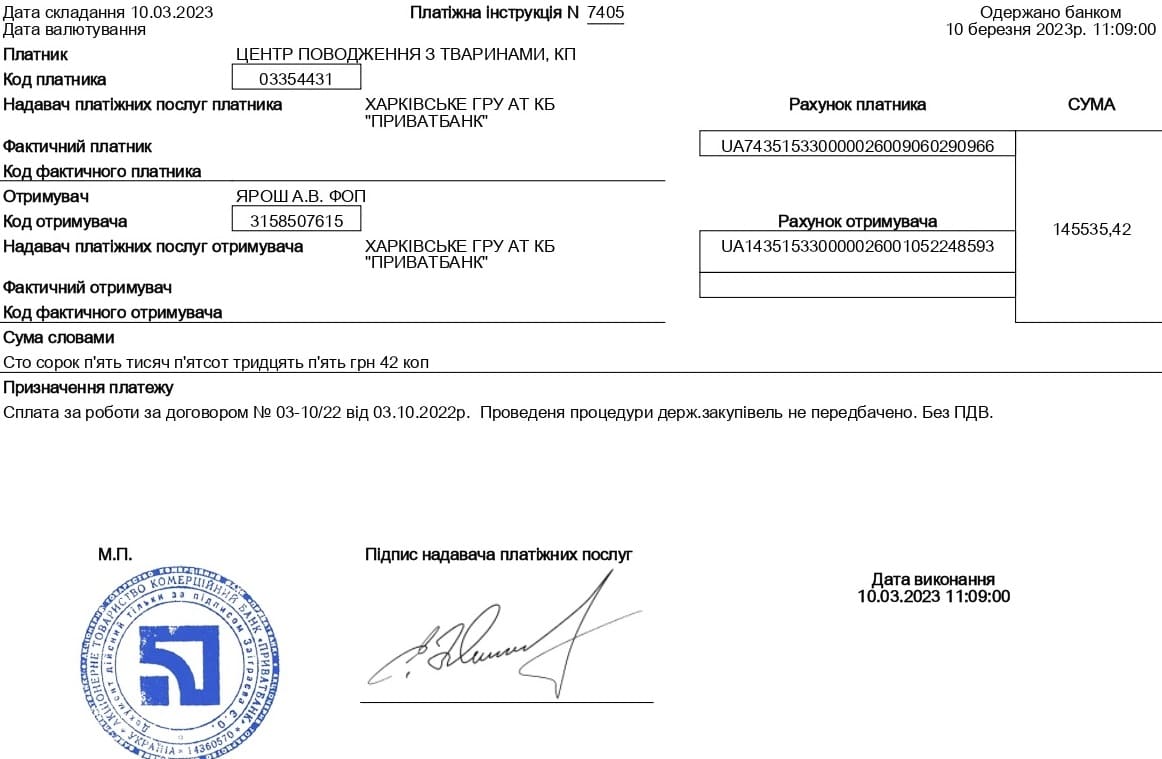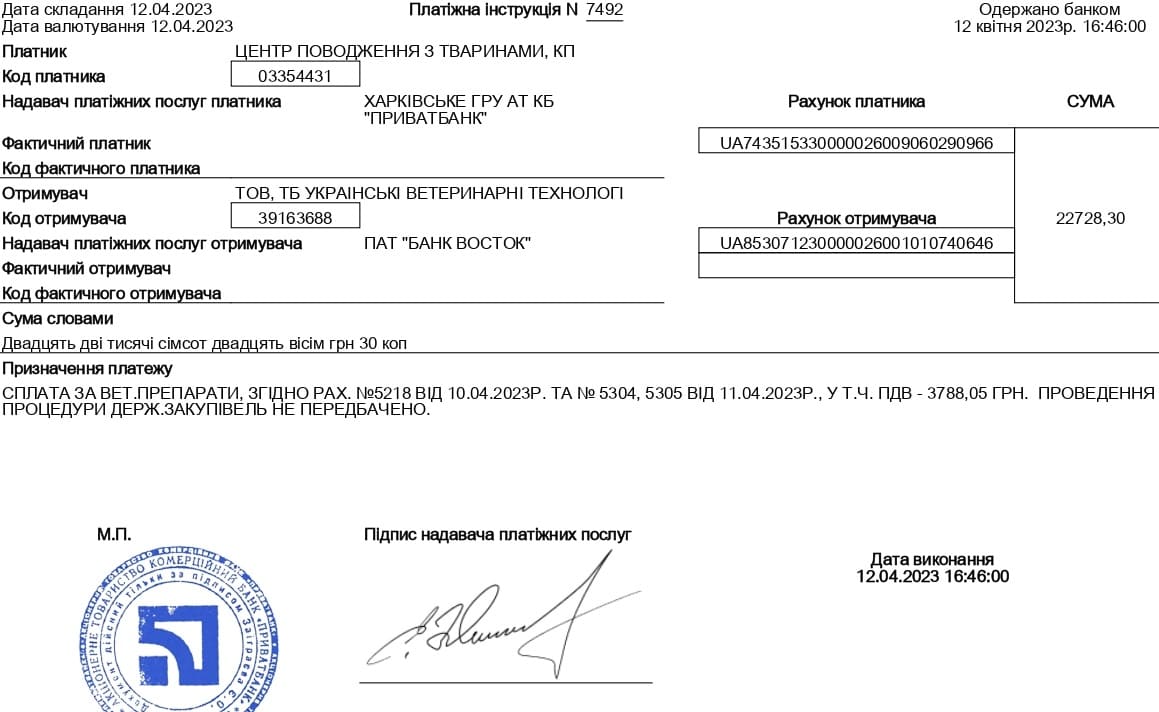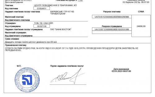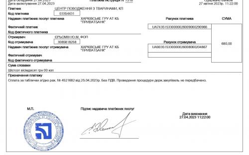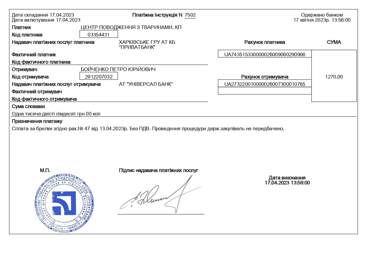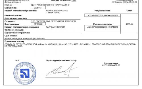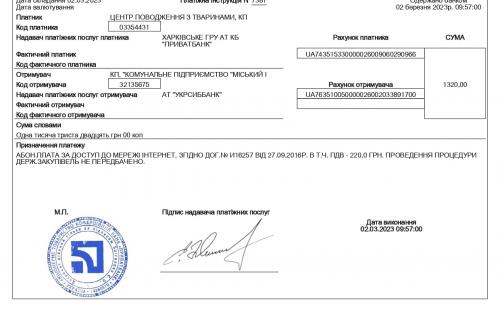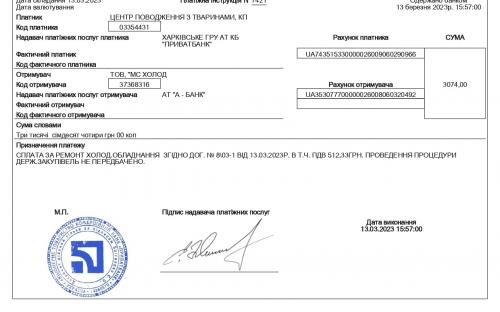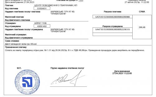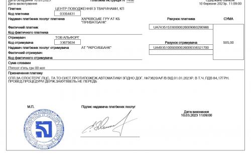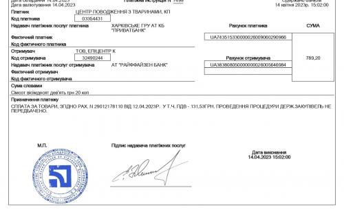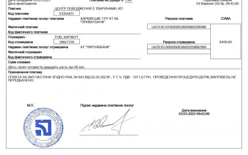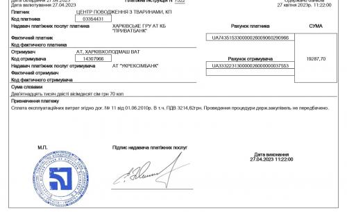 Звіт з надходження благодійних коштів та витрат підприємства за березень та квітень 2023р