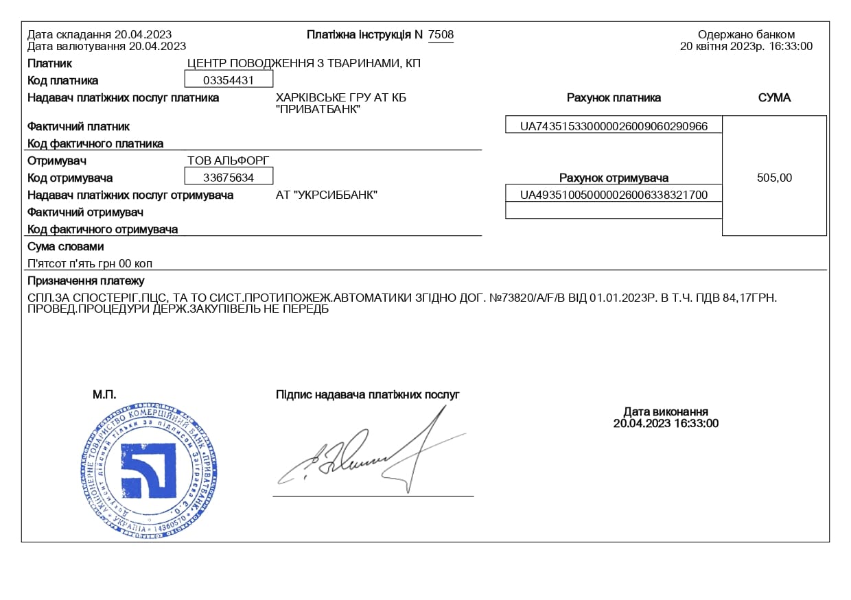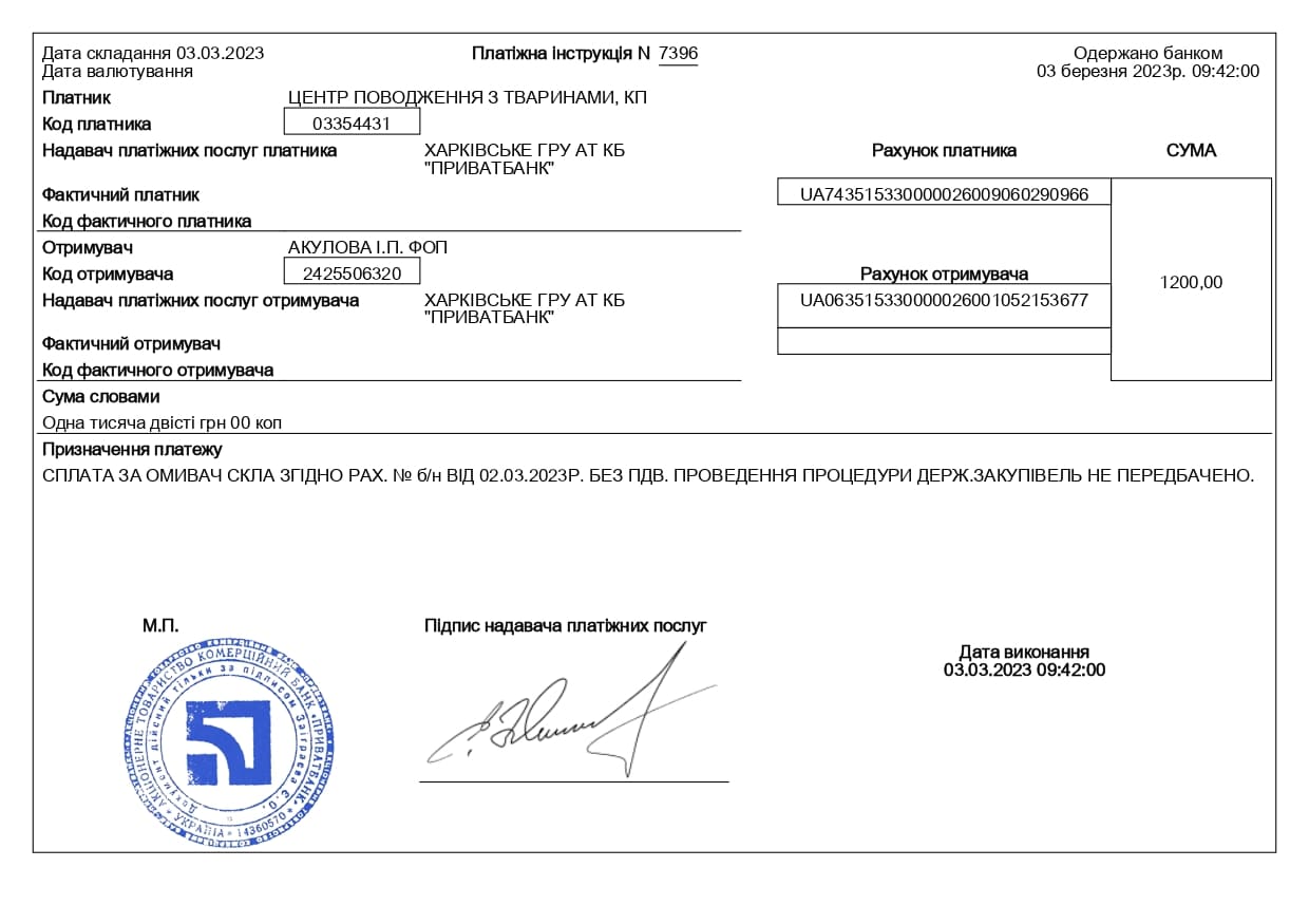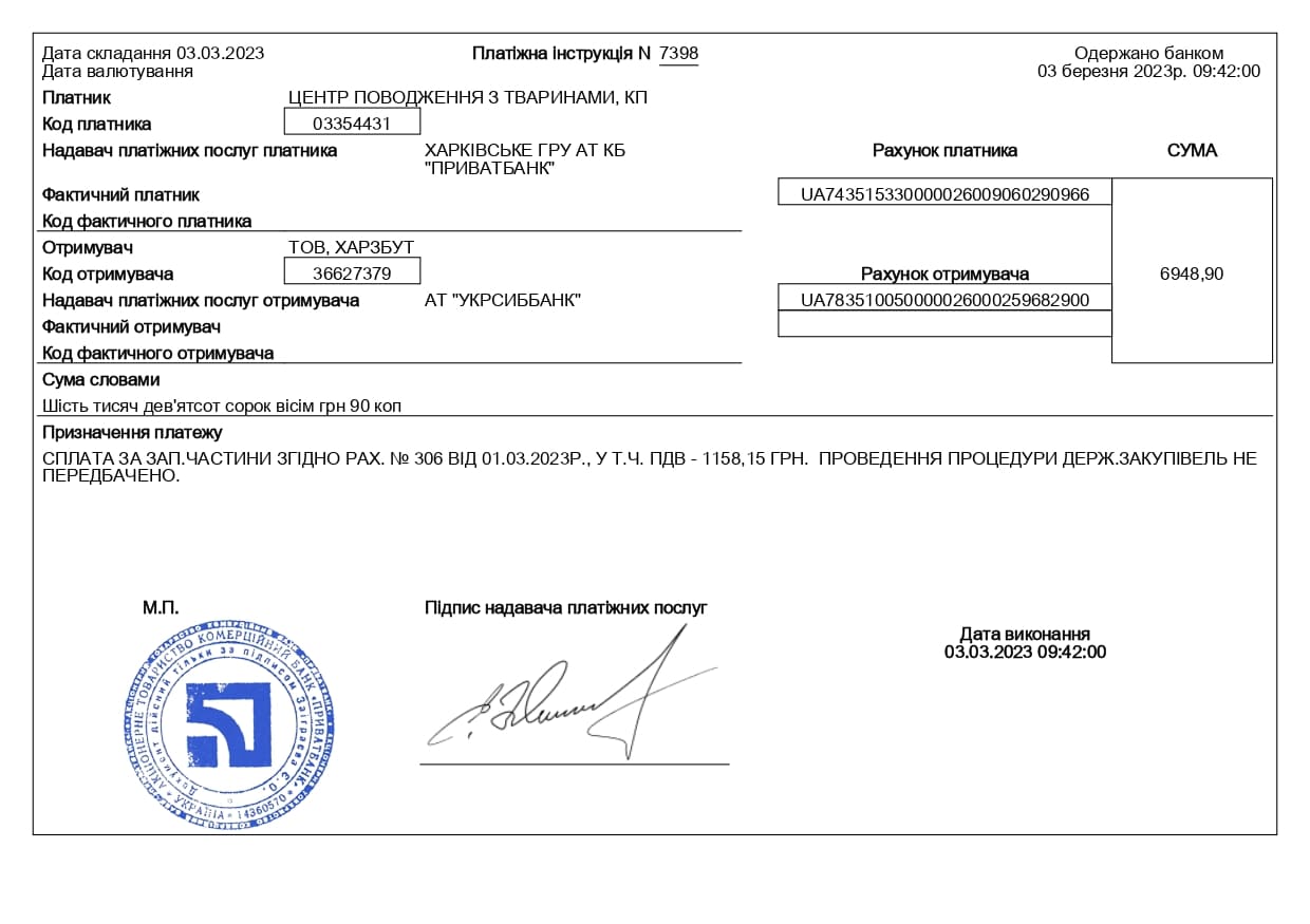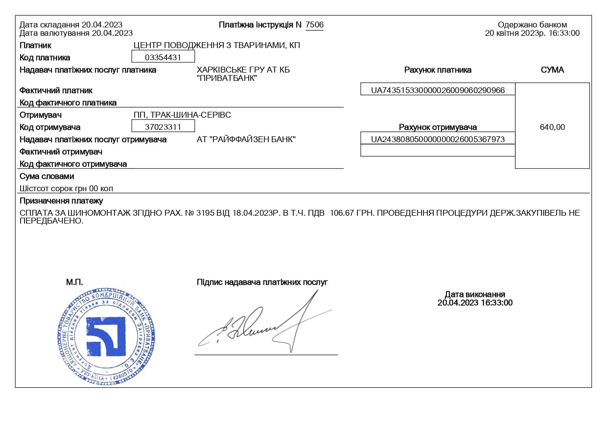 Звіт з надходження благодійних коштів та витрат підприємства за березень та квітень 2023р