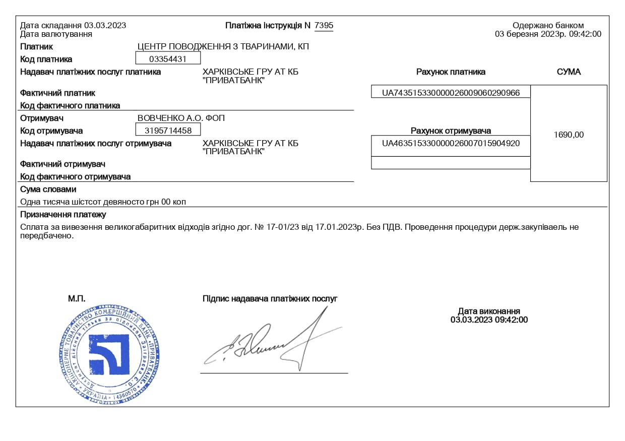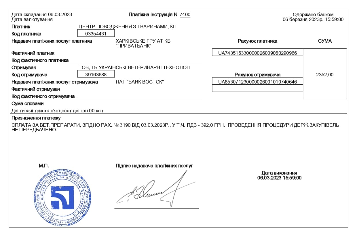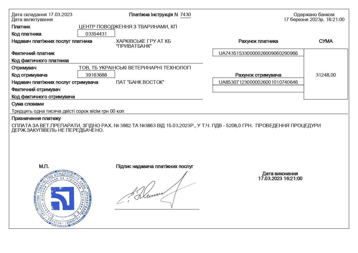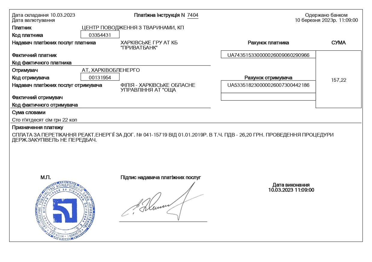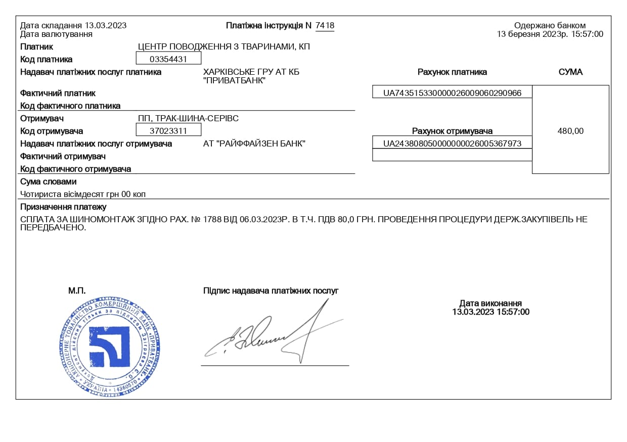 Звіт з надходження благодійних коштів та витрат підприємства за березень та квітень 2023р
