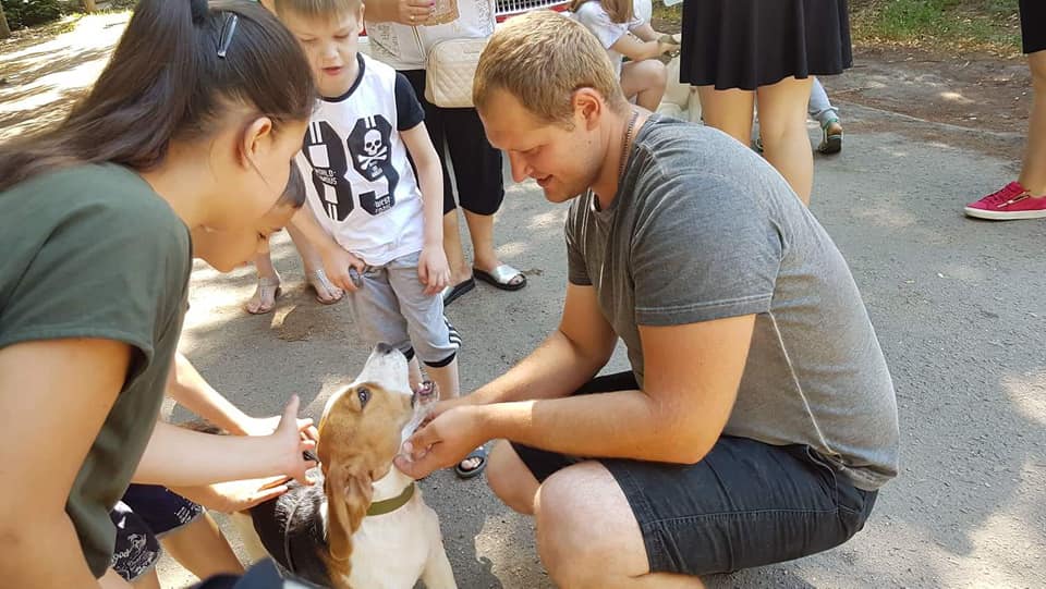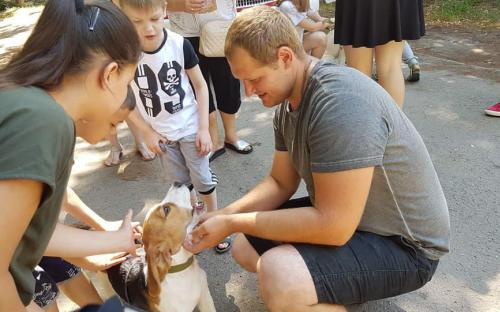 Кинолог Центра обращения с животными Петр Полященко провел лекцию на тему правильного обращения с собаками, а в этом ему помогли лабрадоры Ника и Адель с биглем Снуппи.