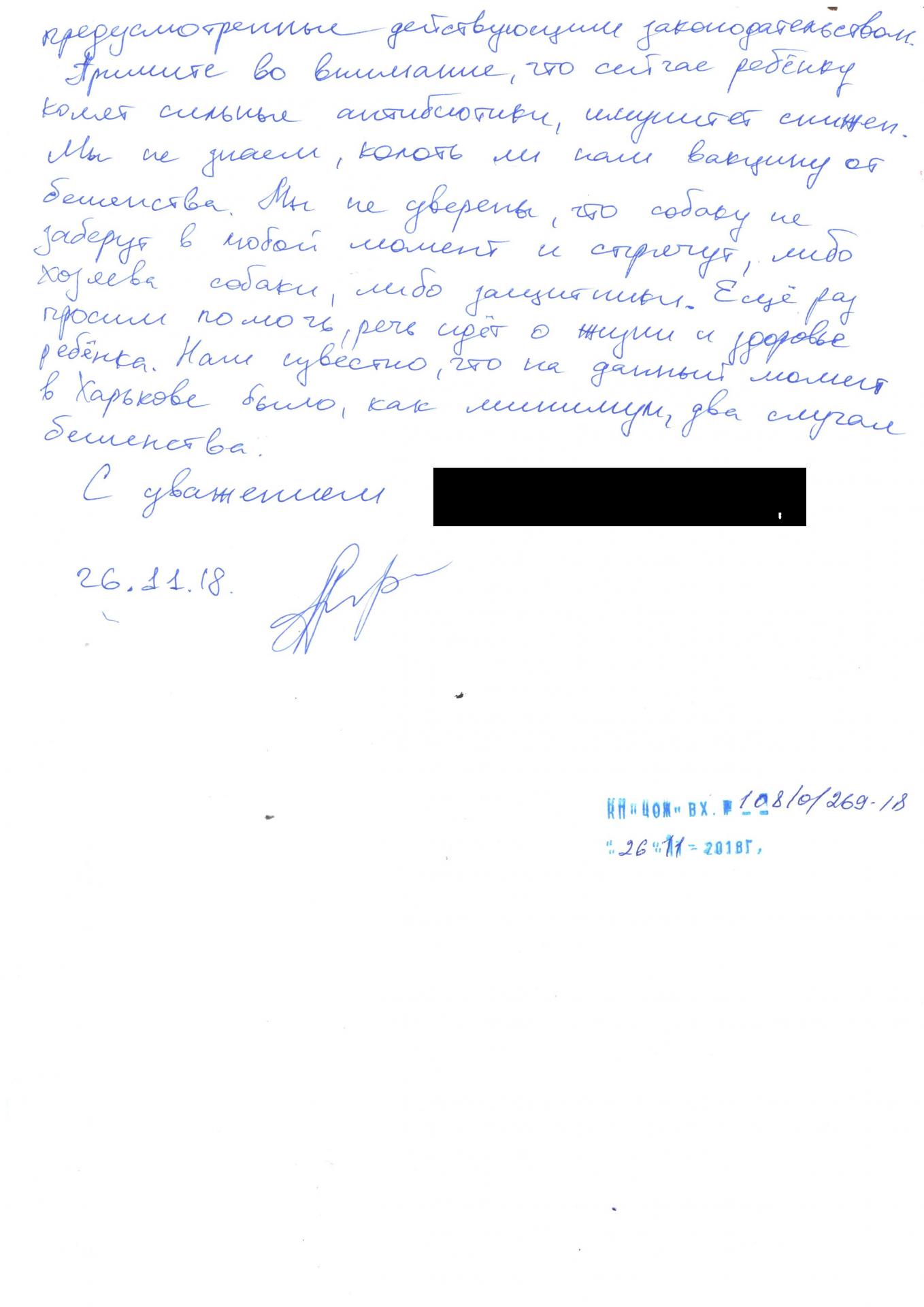 Отец ребенка обратился в КП "Центр обращения с животными" с соответствующим заявлением, в котором указал, что эта собака обитает на территории кооператива в будке и последние несколько недель находилась в свободном выгуле. Руководство кооператива не предоставляет ему сведения о том, кто является собственником собаки. К тому же, папа пострадавшего ребенка переживает, что собаку спрячут ее хозяева или защитники.