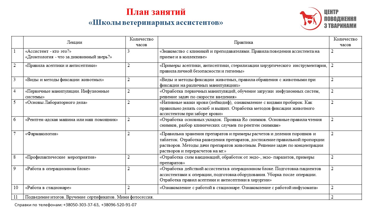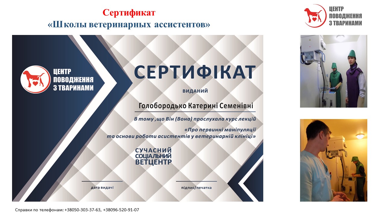 По окончании "Школы ветеринарных ассистентов" выдается сертификат.