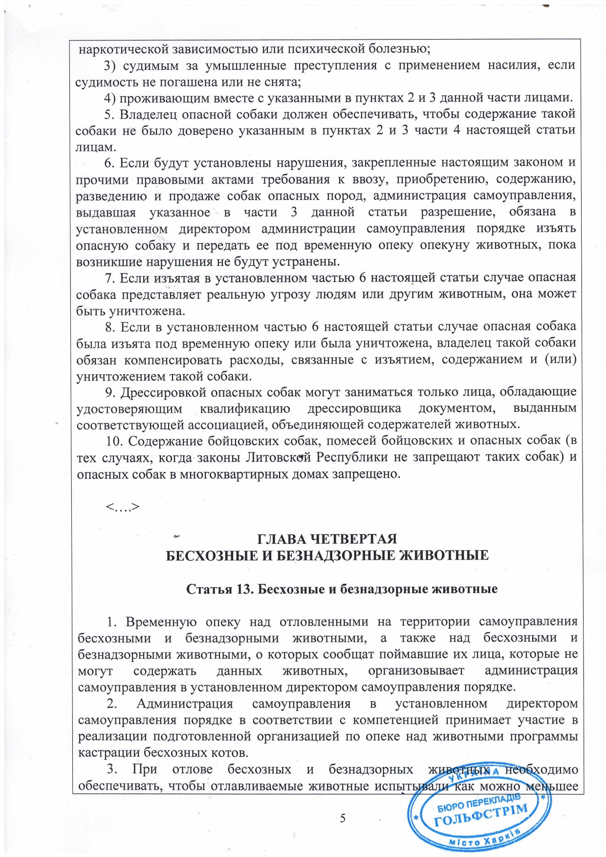 Оригинал Закона Литовской Республики " О благополучии и защите животных".