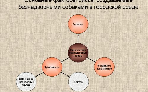 Как известно, присутствие безнадзорных животных (особенно собак) в населенных пунктах является одним из факторов риска; такие животные являются резервуаром ряда зоонозных инфекций и хозяевами паразитических организмов, опасных для человека. В случае безнадзорных собак дополнительным фактором риска является также возможность нанесения покусов людям, являющаяся одним из проявлений агрессивного поведения. (см.напр., (Beck, 75)).