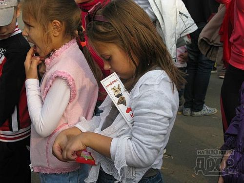 В рамках благотворительного марафона параллельно с конкурсами для самых маленьких сотрудники КП «Центр обращения с животными» собирали зоотовары для строящегося приюта для бродячих животных на пр. Гагарина. Все желающие неравнодушные харьковчане имели возможность помочь животным Харьковского городского приюта. Гости праздника передали животным строящегося приюта корм, а также другие необходимые вещи.