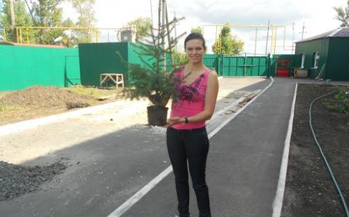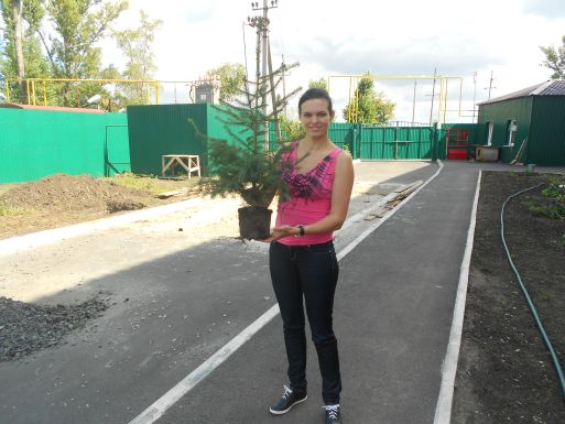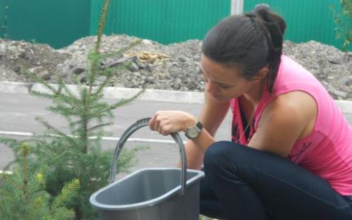 Пока группа волонтеров запасается саженцами сирени, ведущая новостей харьковского ТВ Алена Макарова привезла и сама посадила две голубые ели.