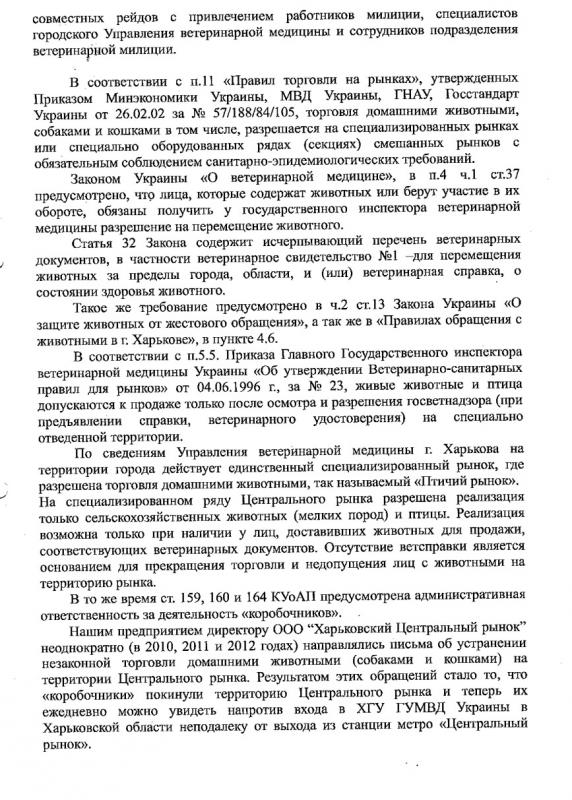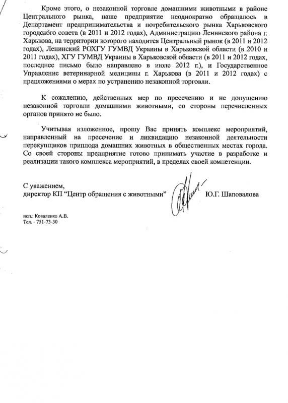 КП "Центр обращения с животными" на протяжении 3 лет предпринимает попытки ликвидации бизнеса на жизни животных, прозванного в народе "кровавым бизнесом коробочников". С 2010 года было проведено множество рейдов в местах несанкционированной торговли (в районе Центрального рынка), было направлено 24 заявления в различные инстанции. Но перекупщики домашних животных продолжают деятельность. Их можно увидеть каждый день напротив Городского Управления милиции Харьковской области, возле выхода из метро "Центральный рынок".