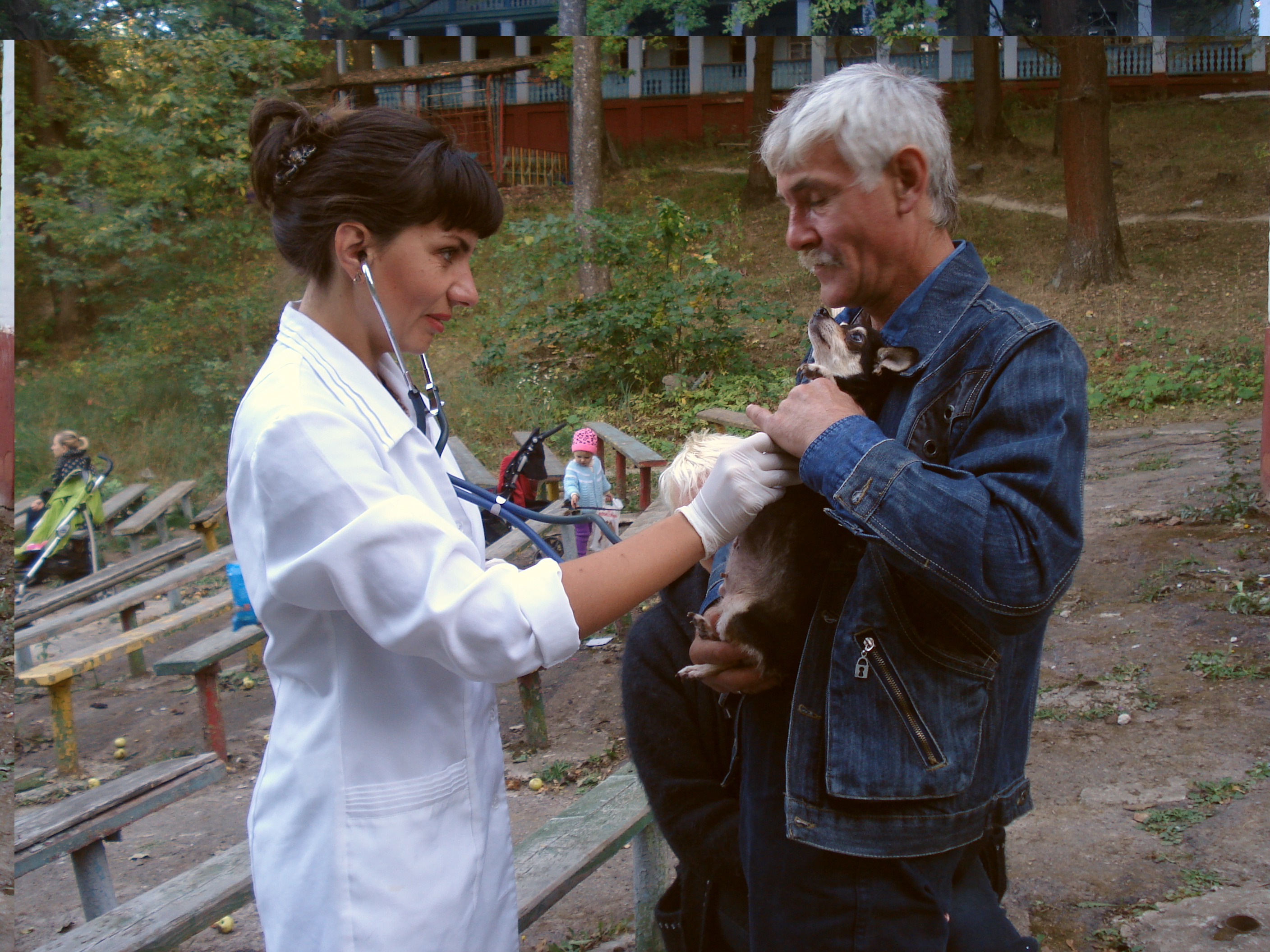 Сначала было выступление замечательной собачки Зайки под руководством Ирины Безуглой. Дети с удовольствием участвовали в представлении. Выражаем огромную благодарность Ирине за необычайно интересное выступление. После были занимательные конкурсы с подарками. Специально для деток сотрудники центра привезли несколько своих четвероногих воспитанников. Ребята с энтузиазмом играли, гуляли и общались с собаками. У многих из них домашние любимцы остались в зоне АТО. Собак и кошек, живущих, в лагере осмотрел ветеринар приюта. Каждое животное  получило  высококвалифицированную ветеринарную помощь    и    вкусные подарки от компании Royal Canin.