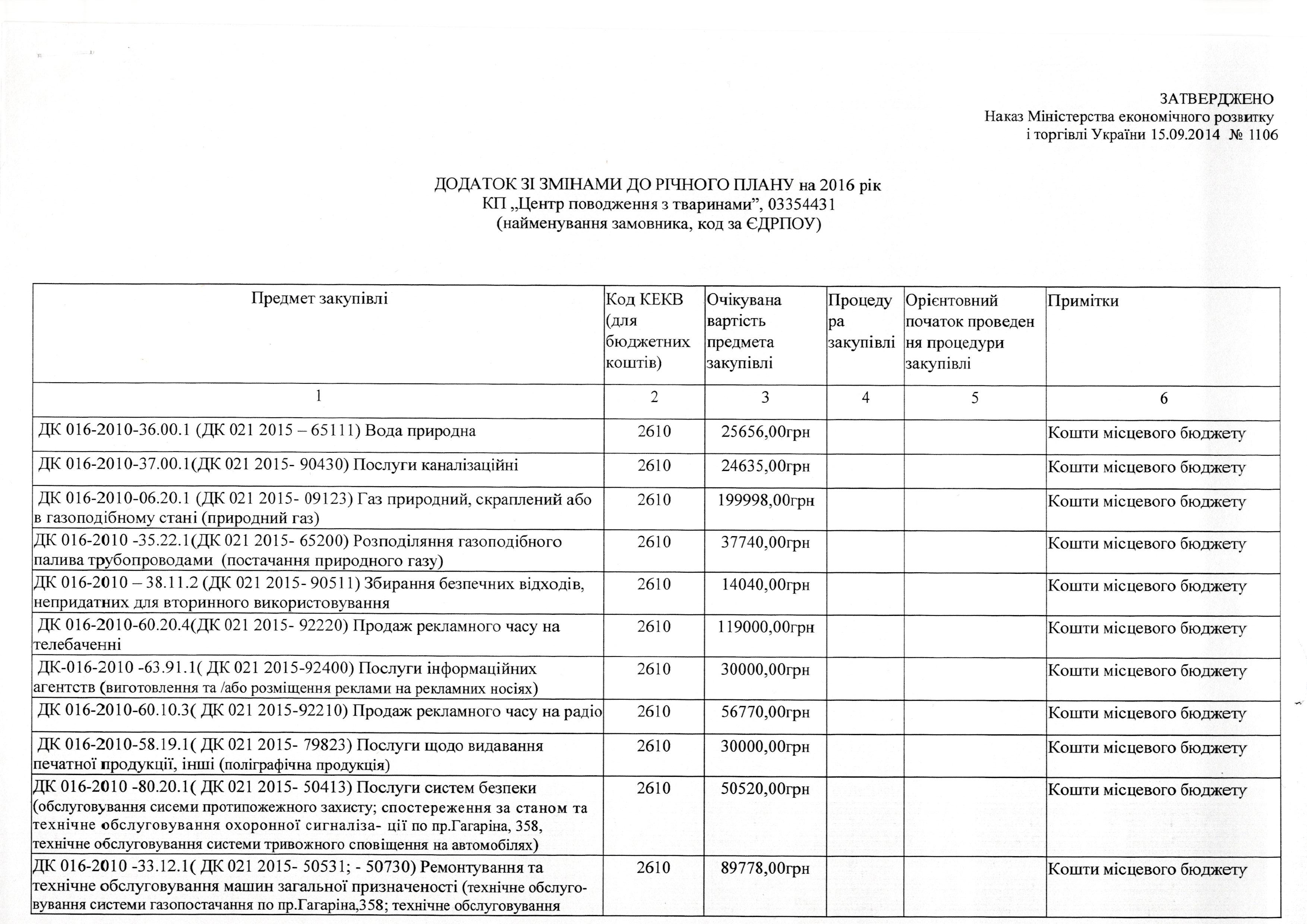 Додаток зі змінами до річного плану на 2016 рік.
