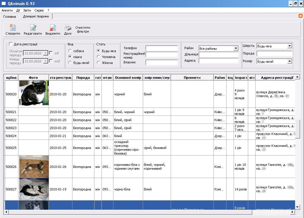 Зареєстрована тварина заноситься в Єдину електронну базу даних.