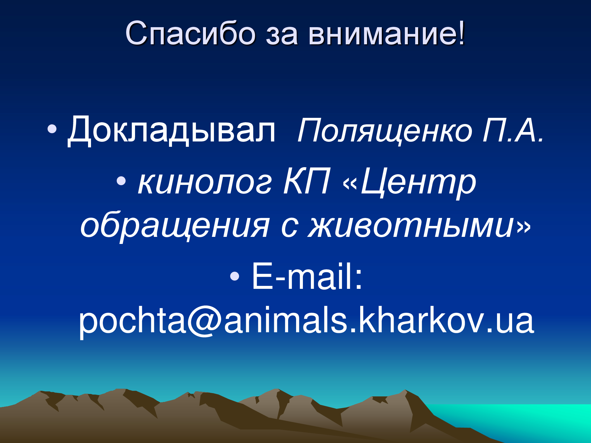 Автор: Полященко П.А., кинолог КП «Центр обращения с животными». E-mail: pochta@animals.kharkov.ua