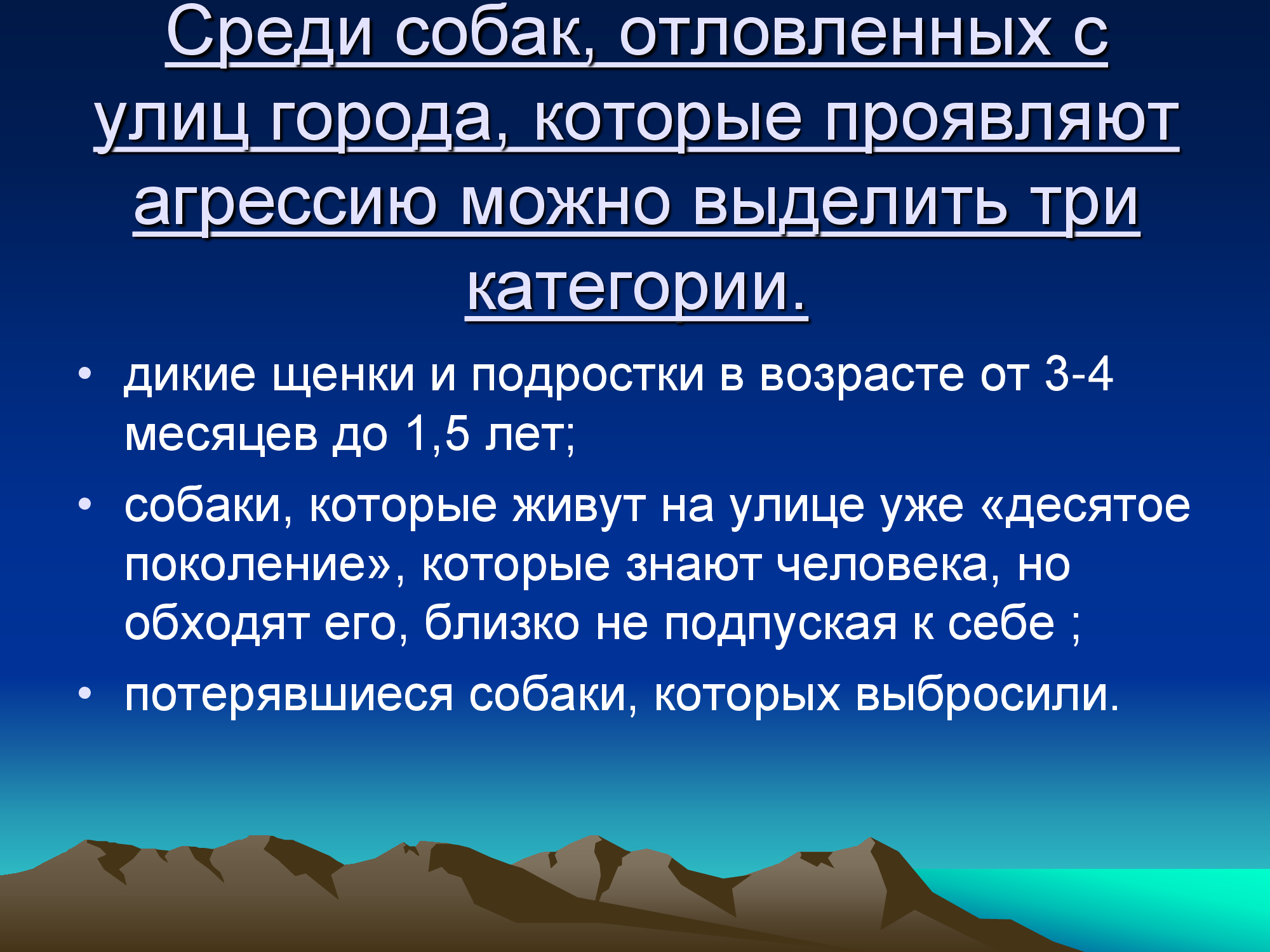 Среди собак, отловленных с улиц города, которые проявляют агрессию можно выделить три категории.