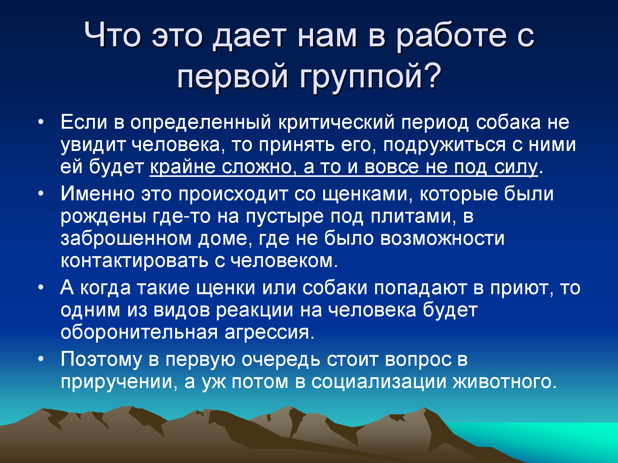 Нет понимания четких границ у периодов, но есть практические доказательства, что если в определенный критический период собака не увидит человека, то принять его, подружиться с ними ей будет крайне сложно, а то и вовсе не под силу.