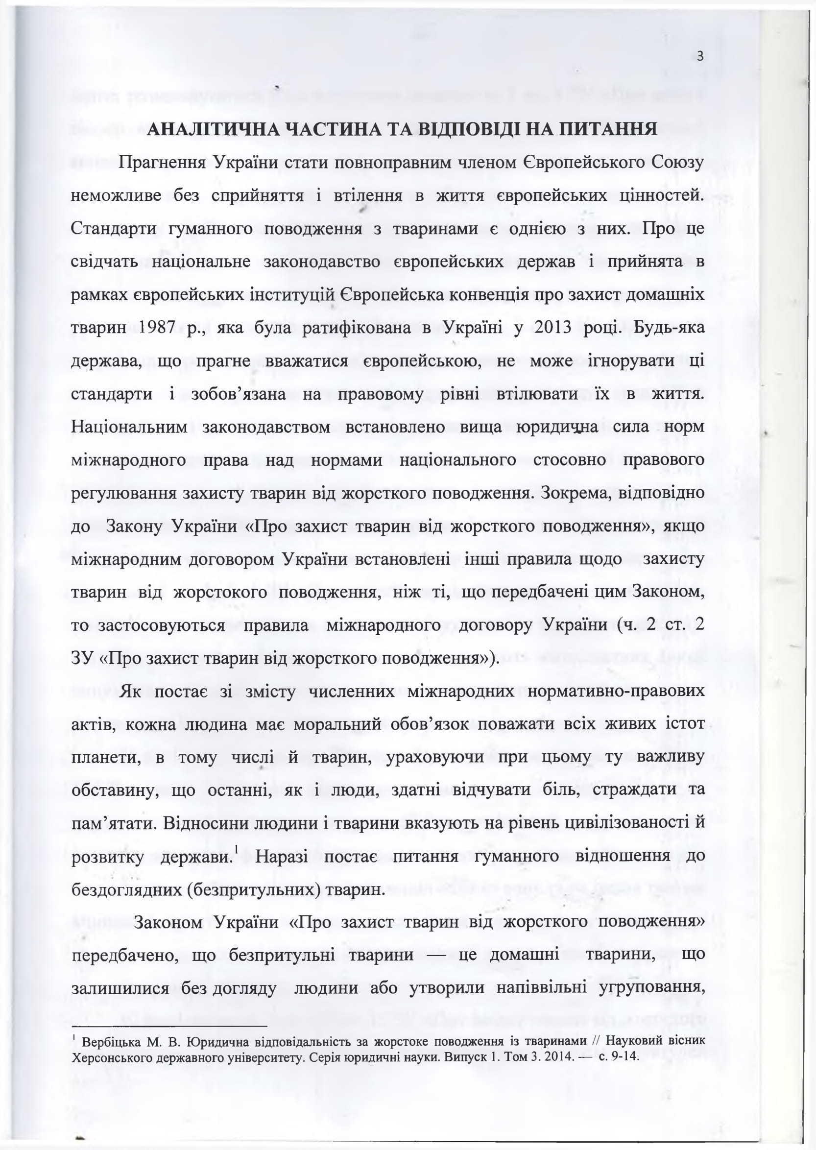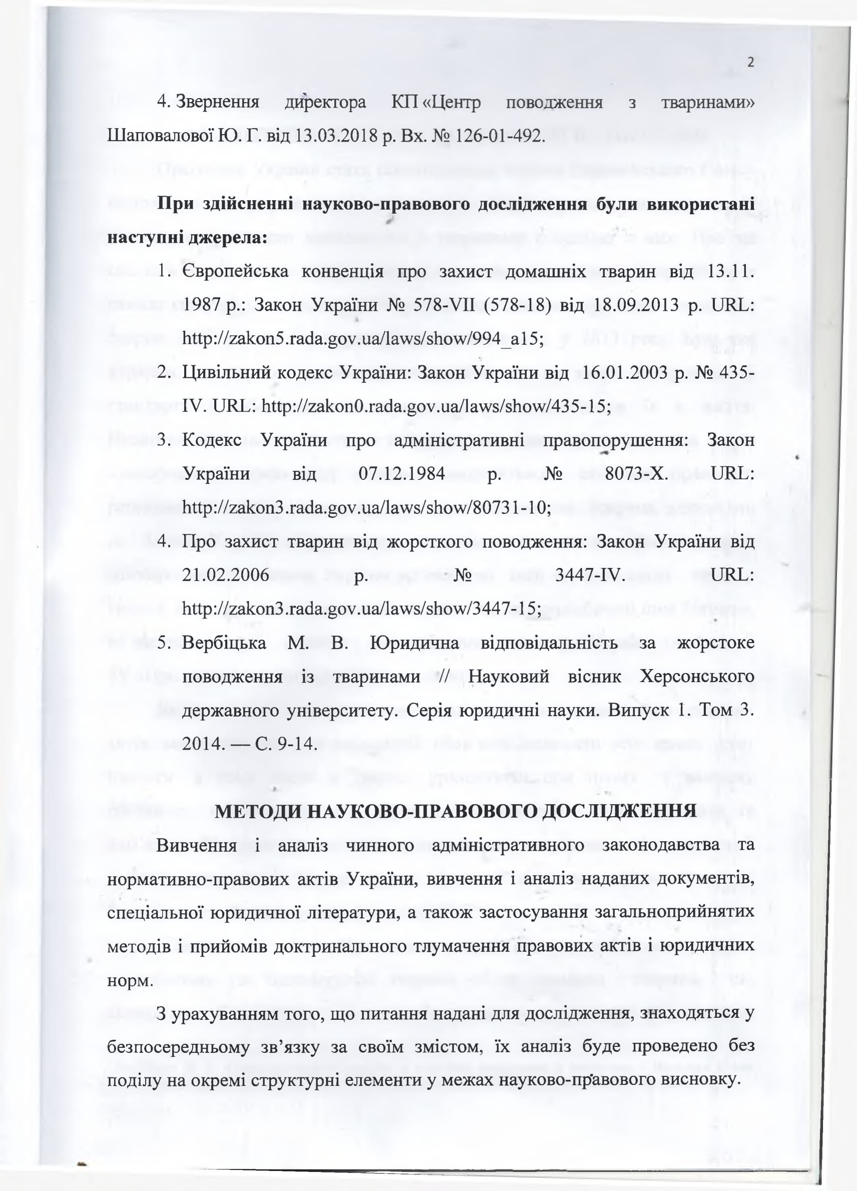 5. Вербицкий М.В. Юридическая ответственность за жестокое обращение с животными // Научный вестник Херсонского государственного университету. Серия юридические науки. Выпуск 1. Том 3.2014.-С.9-14.