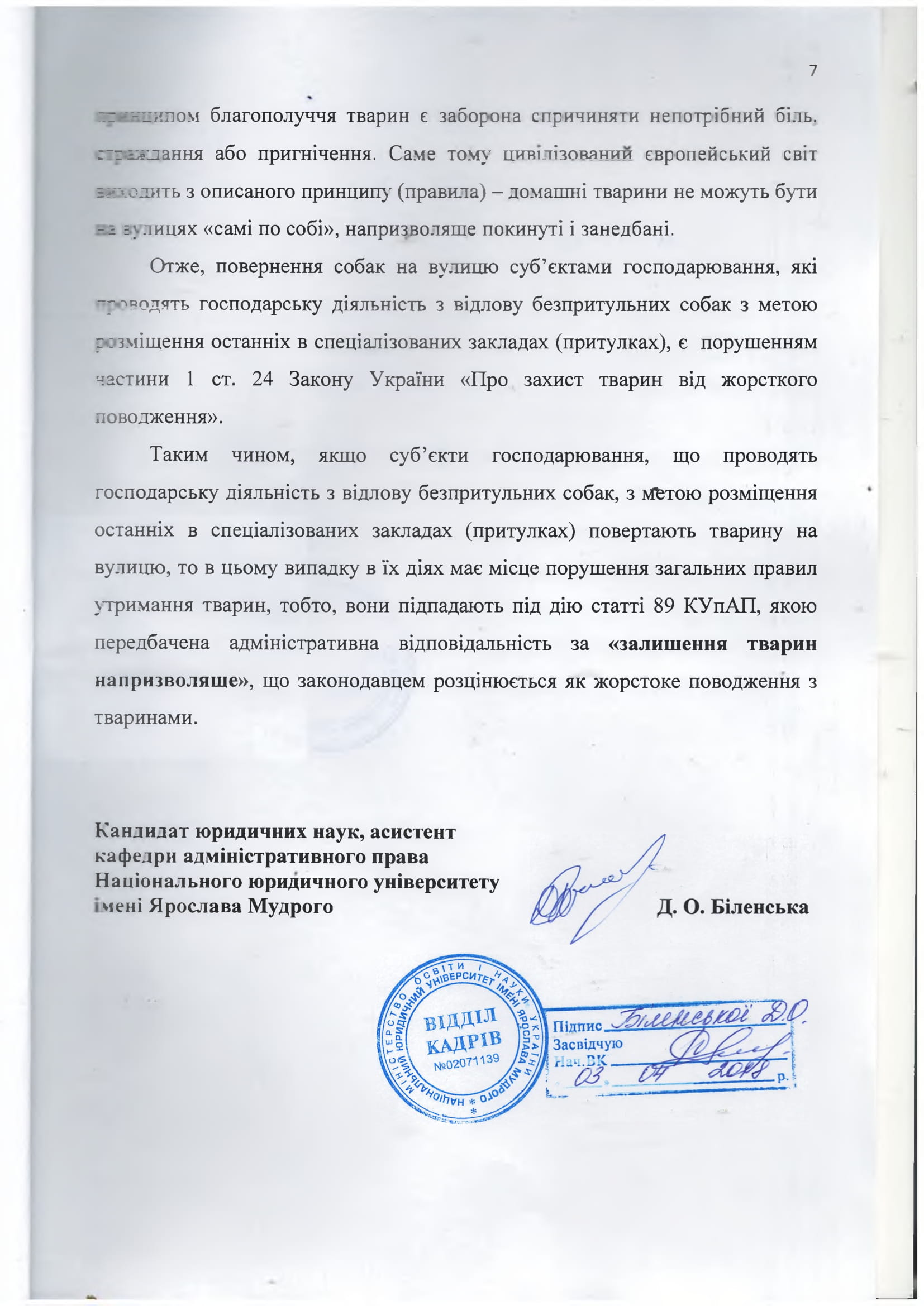 2. Предоставить разъяснения, есть ли такие действия юридических лиц нарушением части 1 ст.  24 Закона Украины «О защите животных от жестокого обращения»?