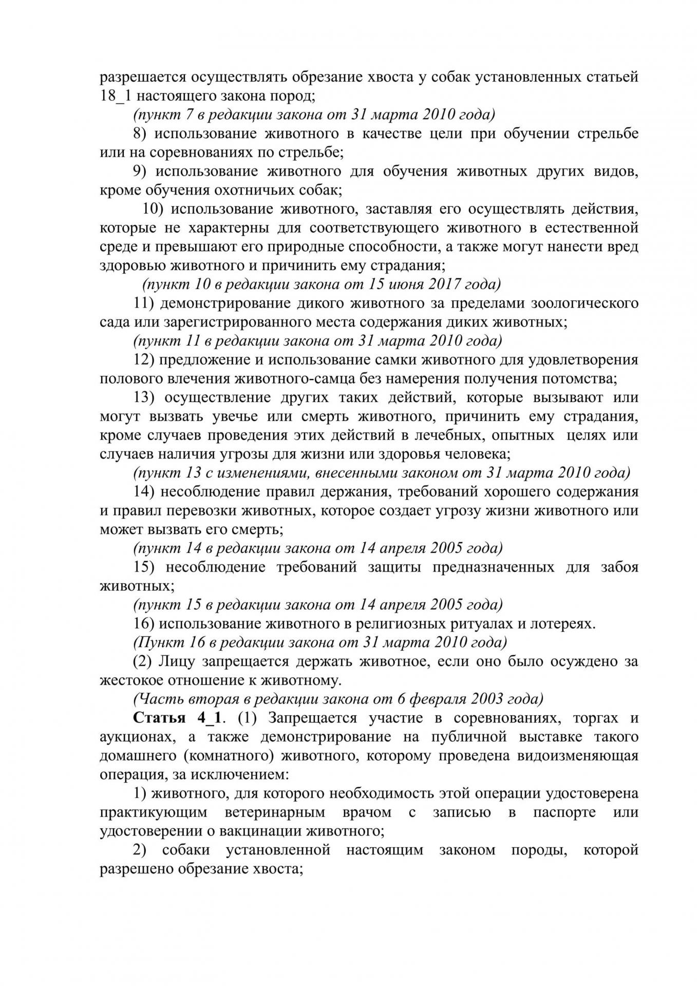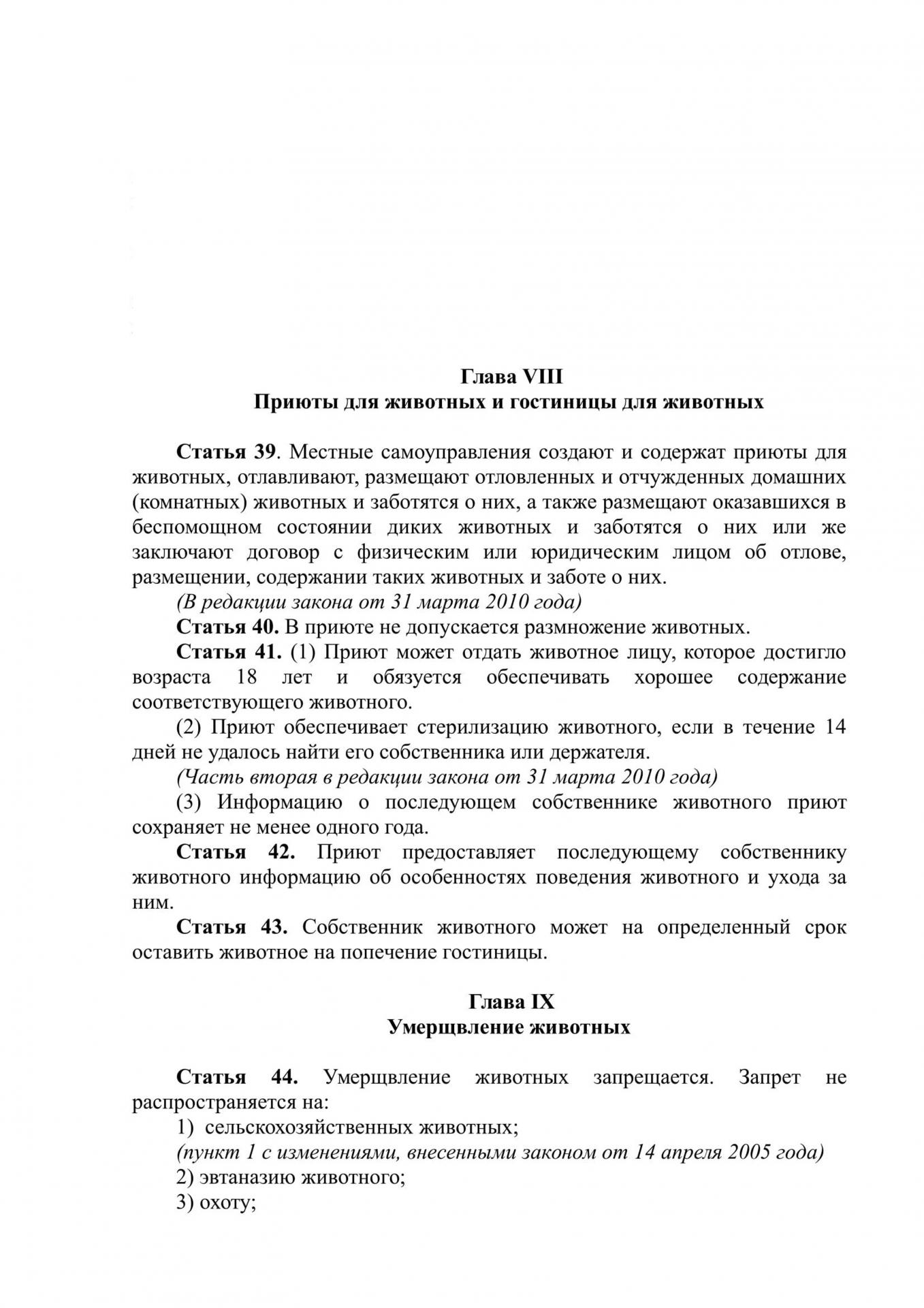Особое внимание уделено содержанию и уходу домашних животных (собак и кошек), а также ответственность за несоблюдение соответствующих требований. В настоящий момент за надлежащее обращение с домашними питомцами отвечают Правила КМ ЛР №266 от 4 апреля 2006 года «Требования хорошего содержания для содержания, торговли и демонстрации в публичных местах домашних (комнатных) животных, а также для обучения собак» (в редакции правил КМ ЛР №699 от 30.06.2009).