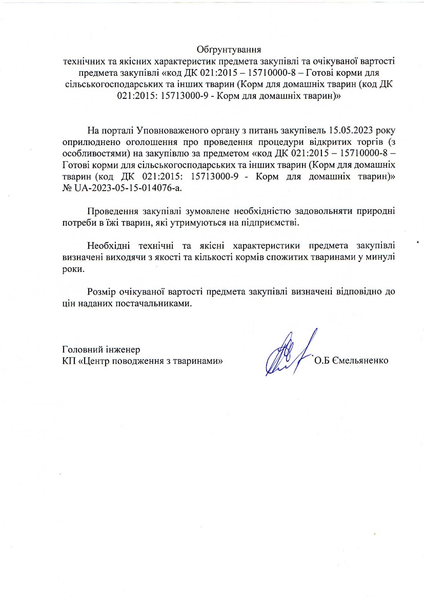 Обґрунтування закупівлі корім для тварин на 2023 рік