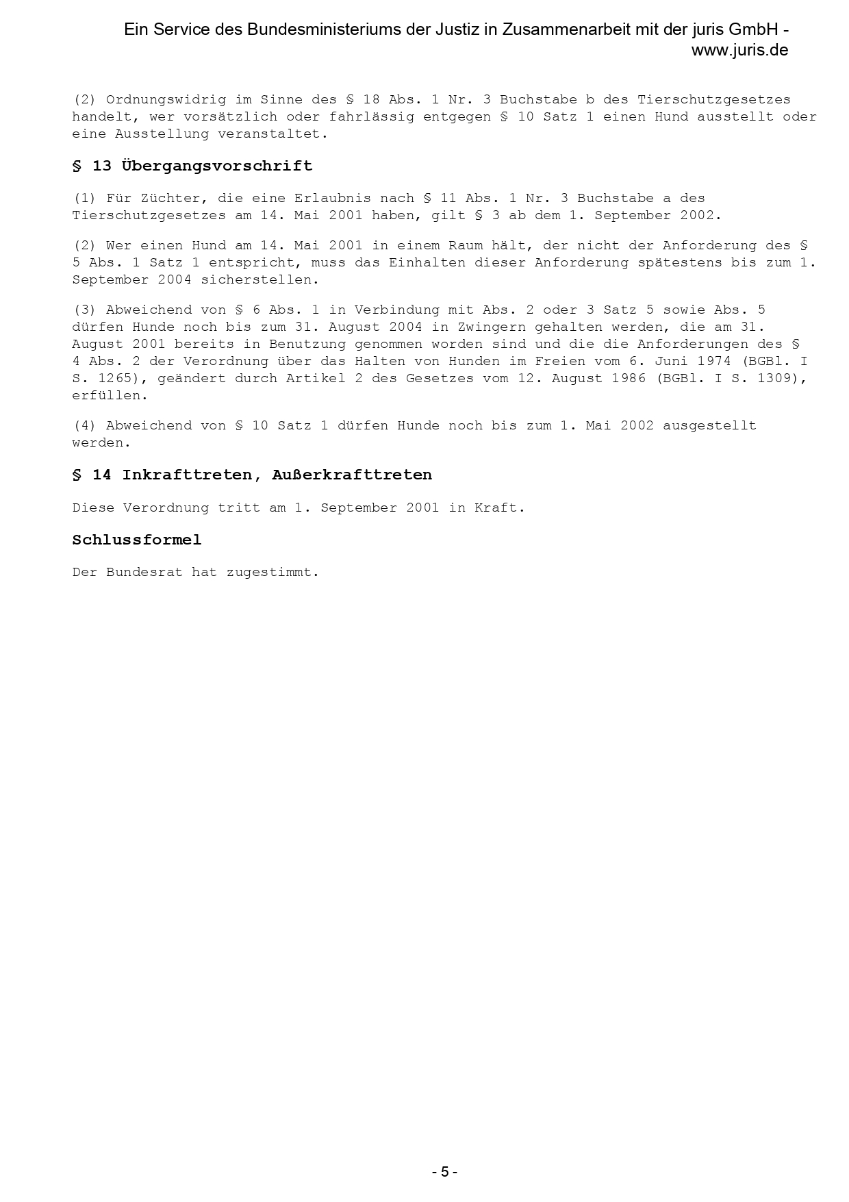 - Тот, кто содержит собаку в помещении с 14 мая 2001 г., не отвечающим требованиям § 5 п. 1 абз. 1, должен обеспечить выполнение этого требования не позднее 1 сентября 2004 г.